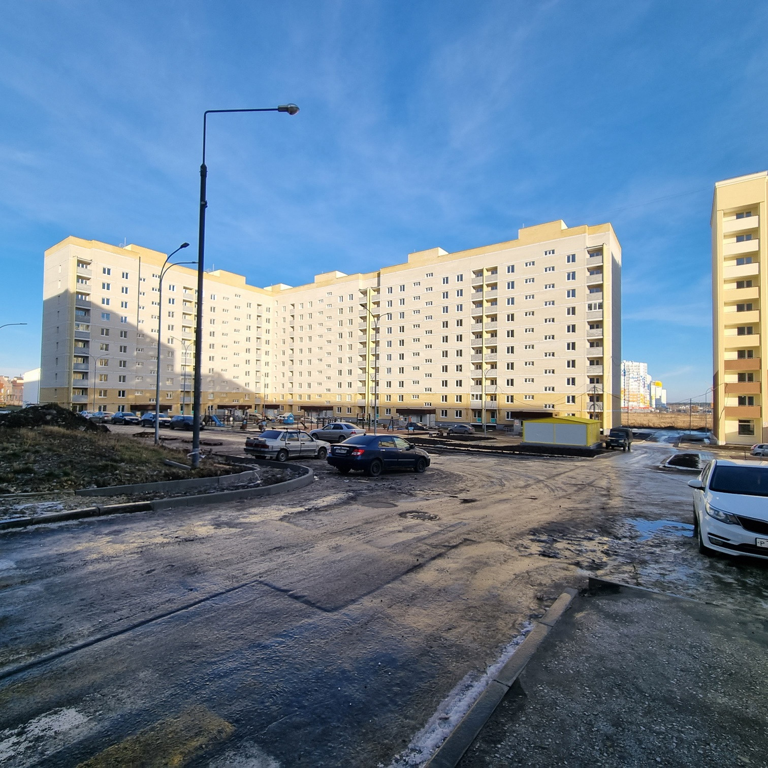 Новый спальный район с развитой инфраструктурой: торговые центры, аптеки, школы, детские сады, сетевые магазины.