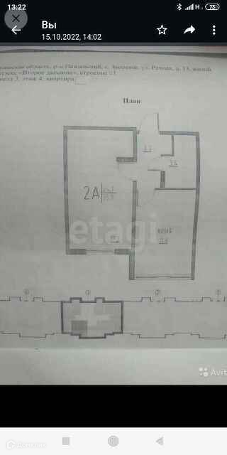 2-комнатная квартира, 35.8 м2, этаж 4 / 9, на продажу в селе Засечном, Речная улица, 13