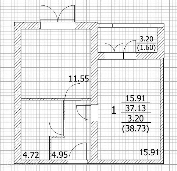 Общая площадь - 37.5 м2