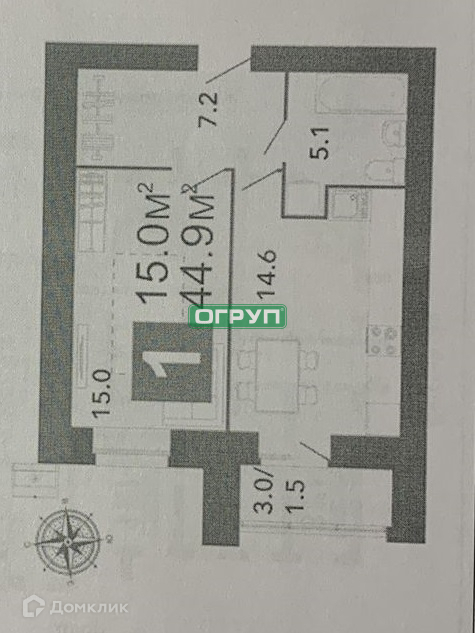 Общая площадь 44.9 м2