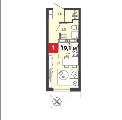 Общая площадь 19.1 м2