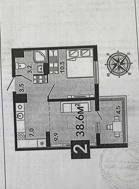 Общая площадь квартиры - 38,6 кв.м.