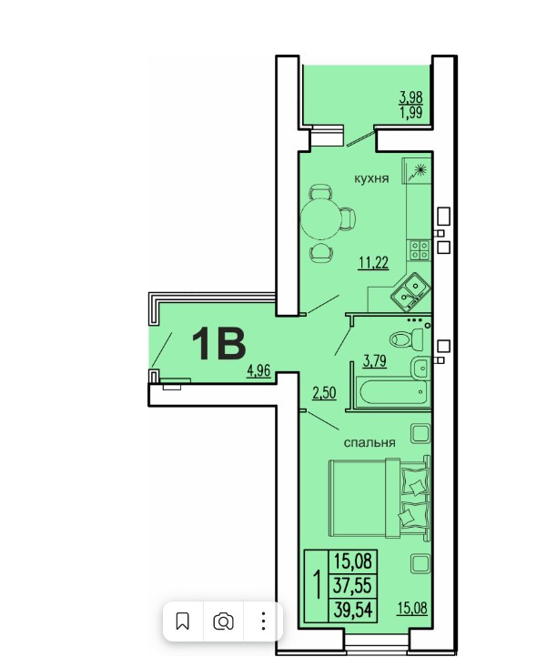 Общая площадь 39.54 м2