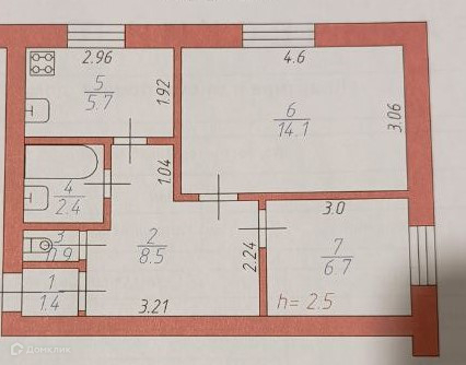 Площадь кухни 6.7 м2