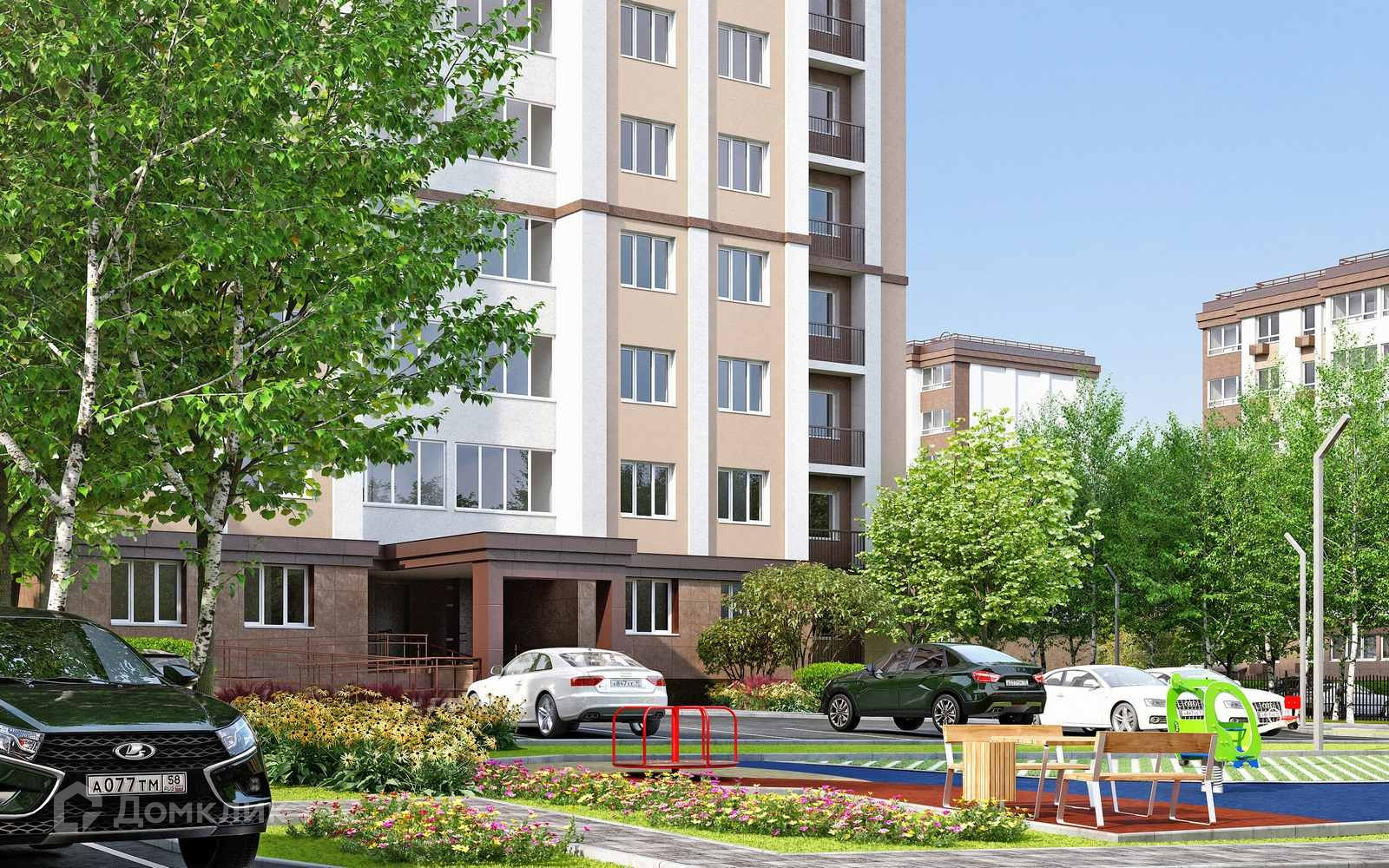 Красивый двор современными зонами отдыха.