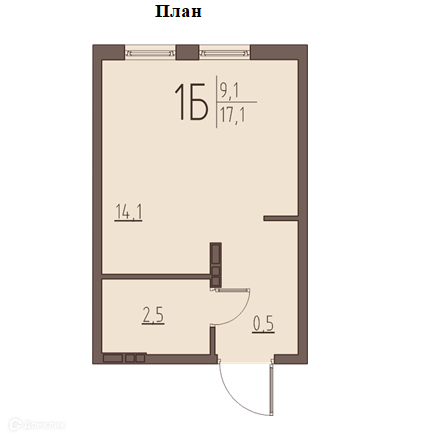 Общая площадь 17.1 м2