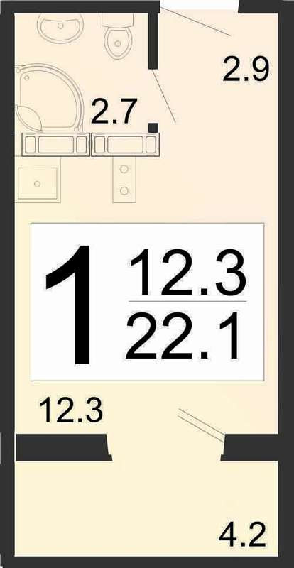 Общая площадь 22.1 м2