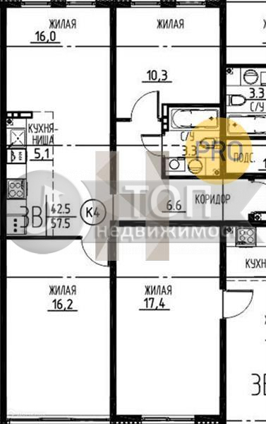 Общая площадь 57.5 м2