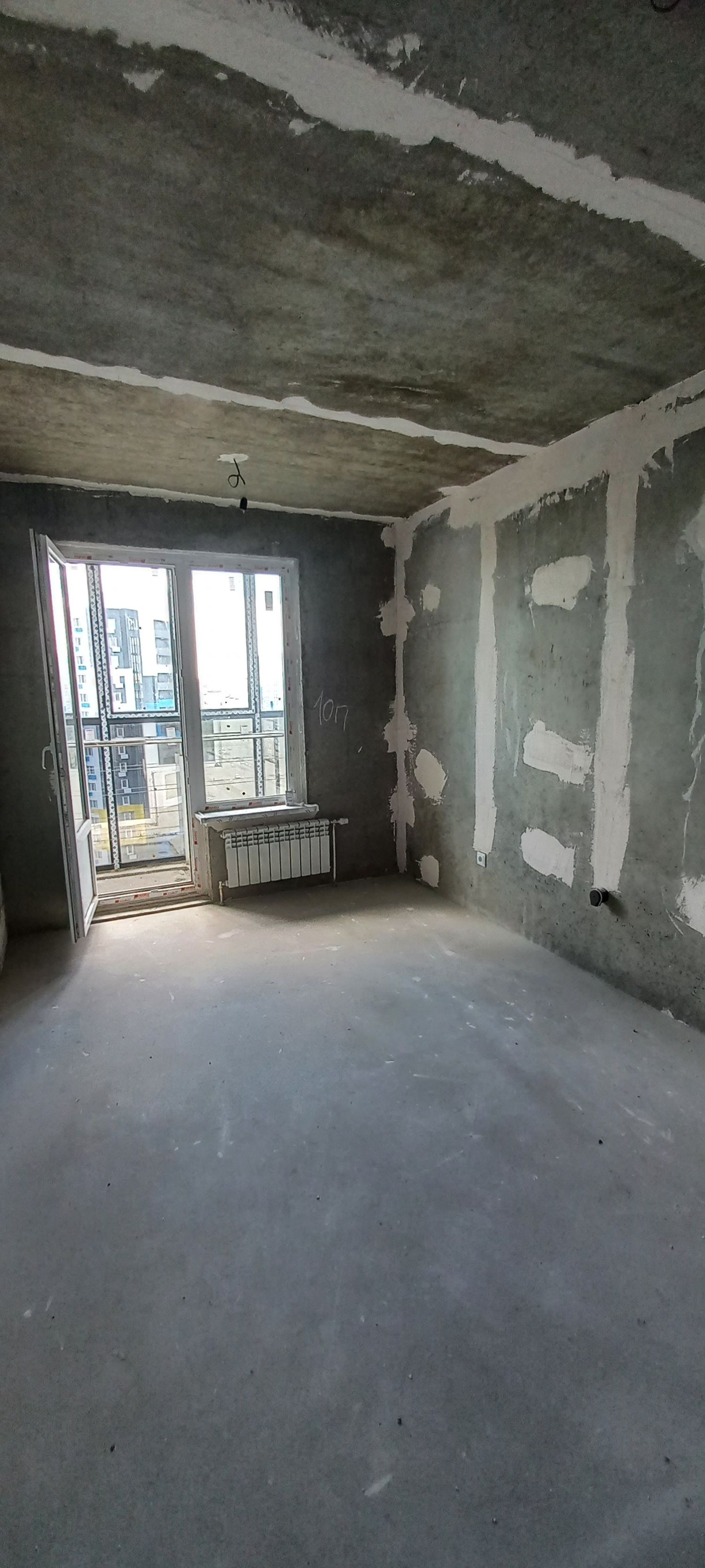 Пластиковые окна, входная металлическая дверь. Черновая отделка.