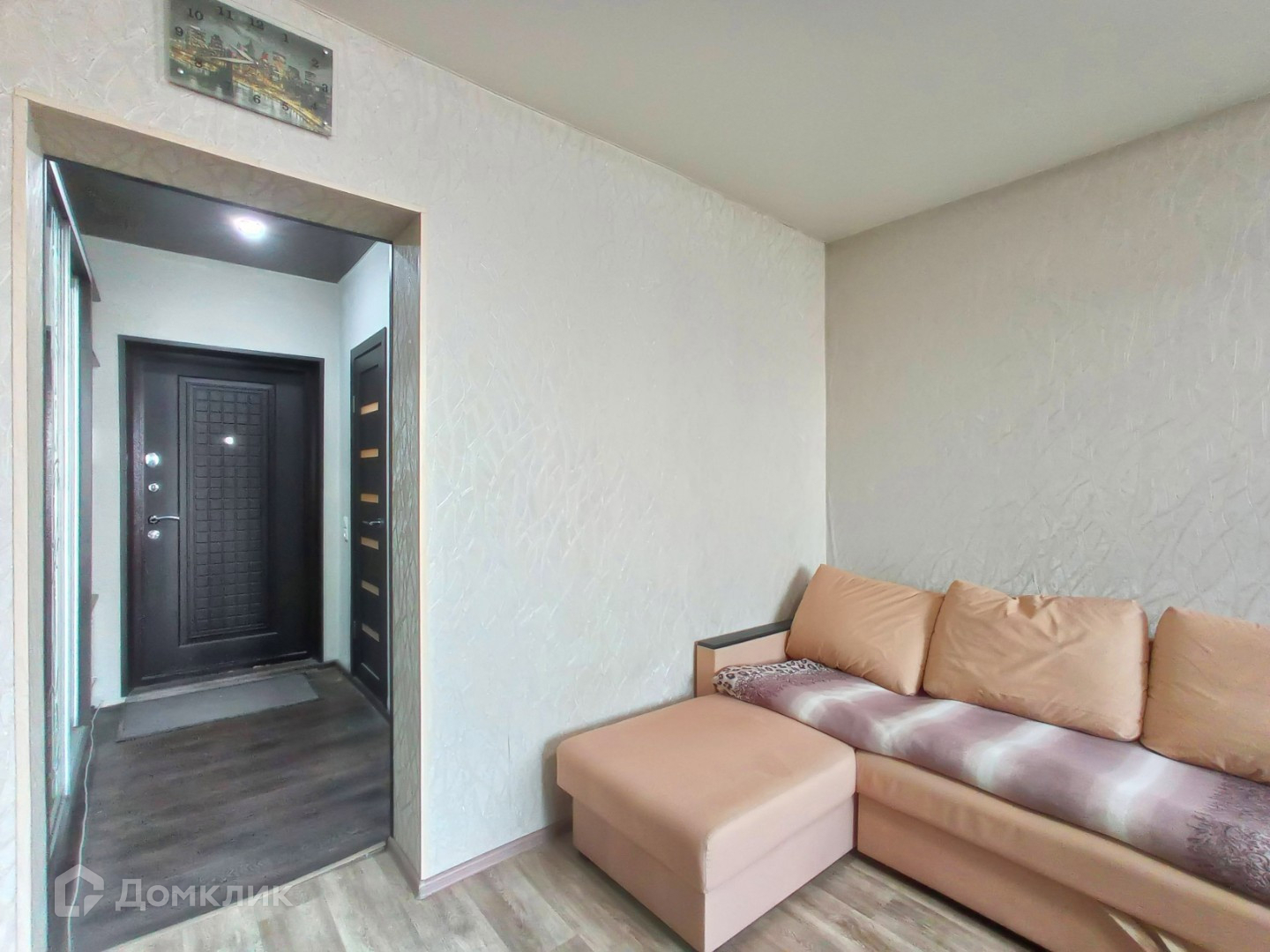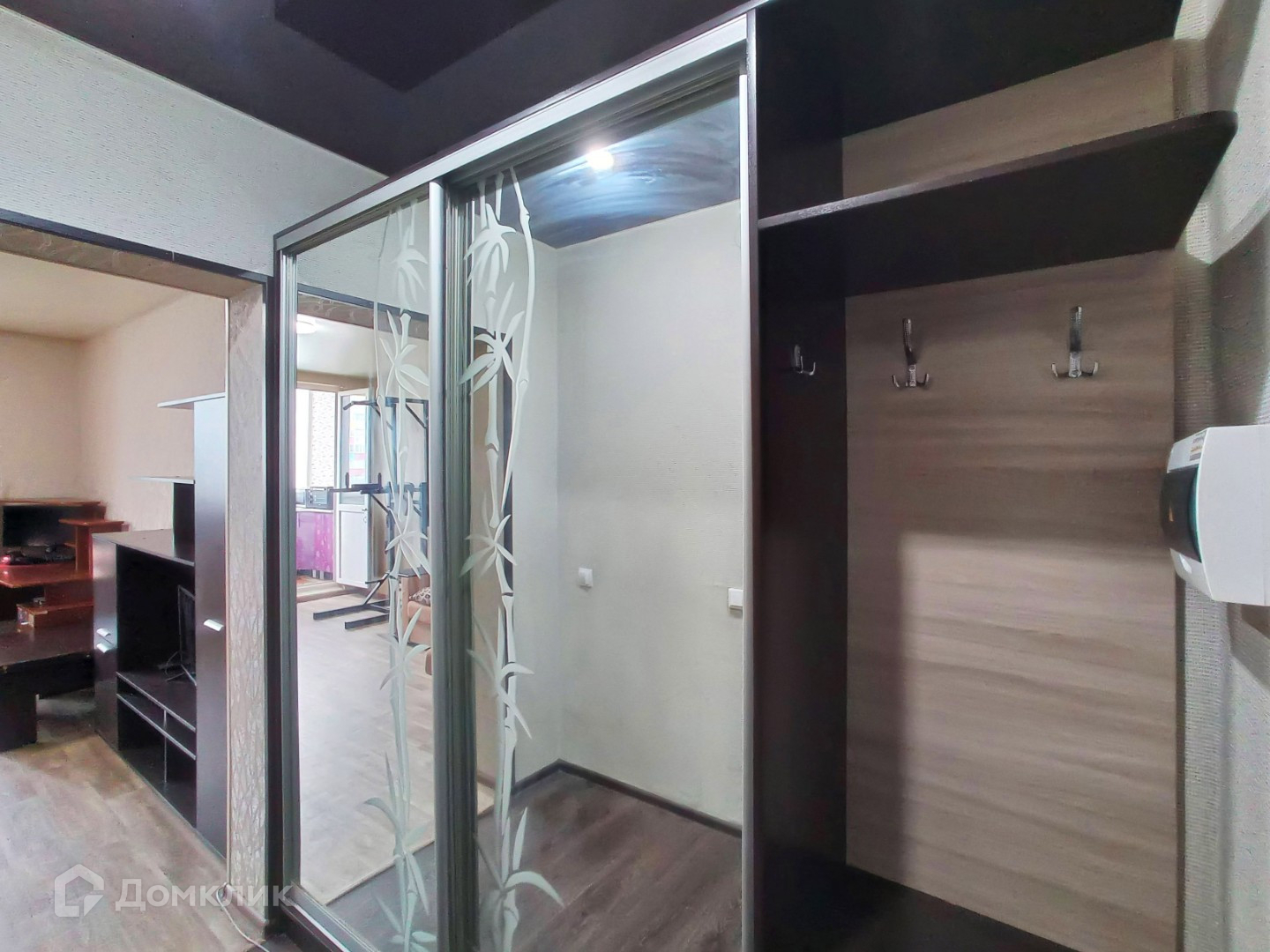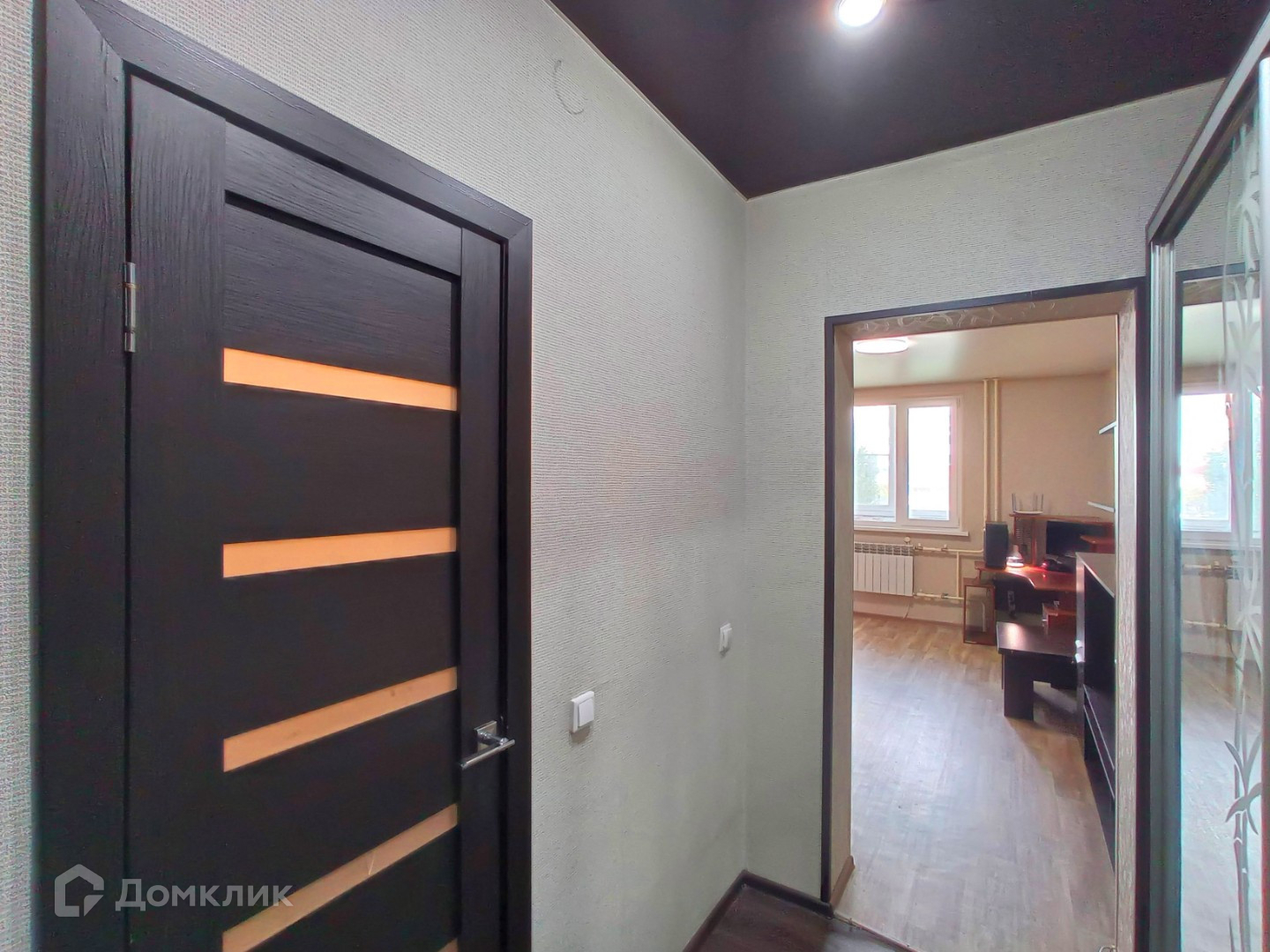 В прихожей обновлена входная группа, новая металлическая дверь с откосами, на полу качественный линолеум.
