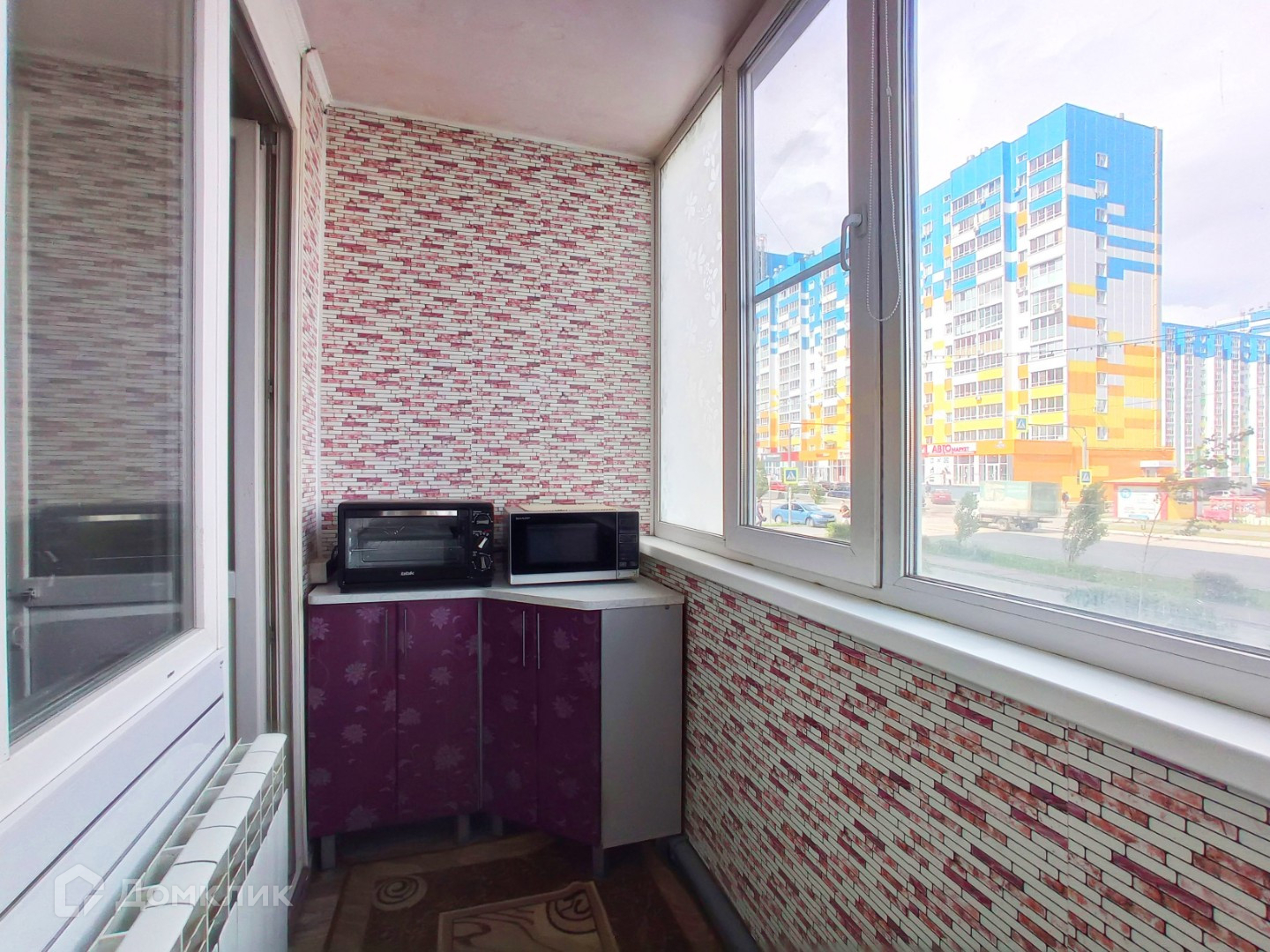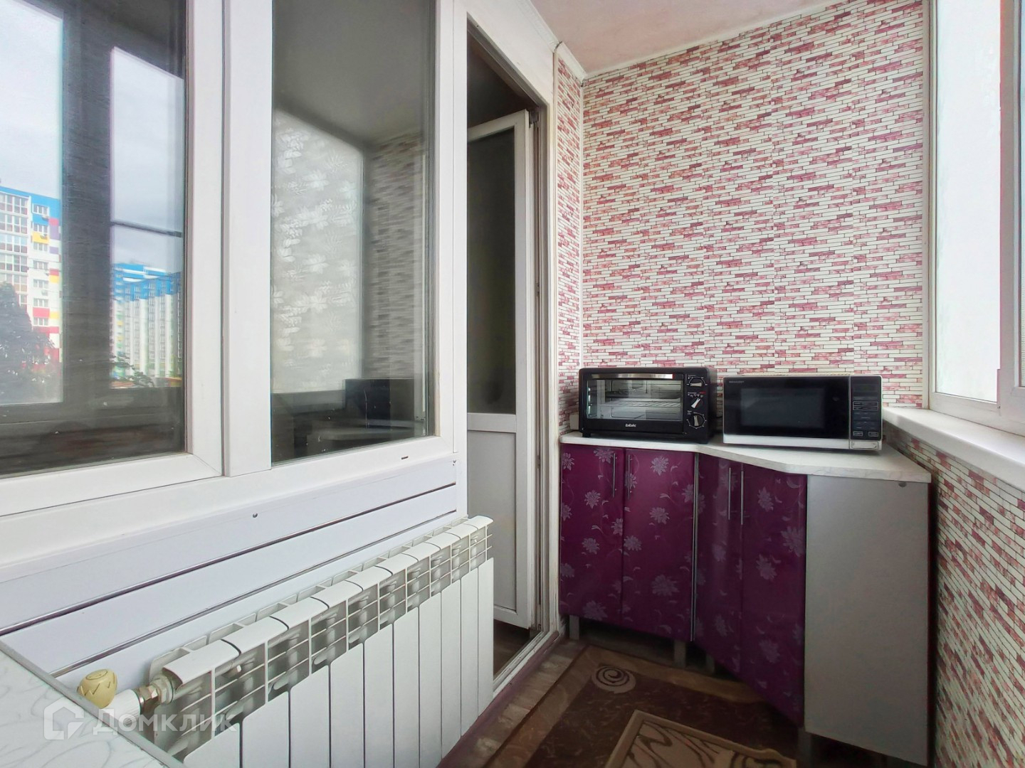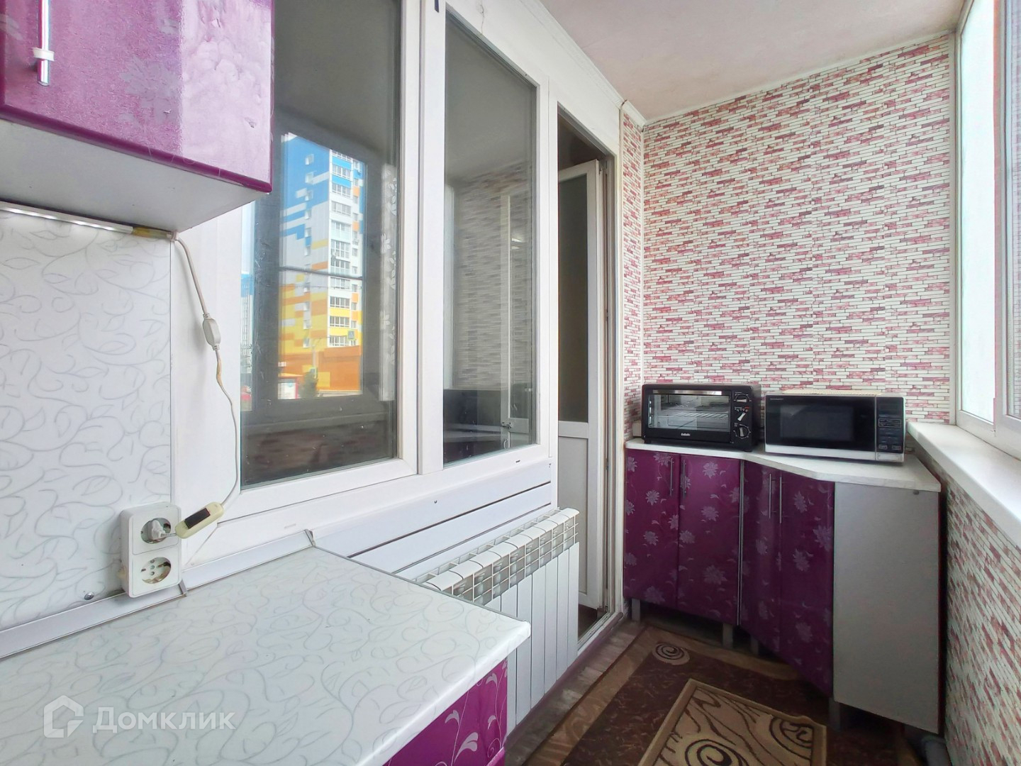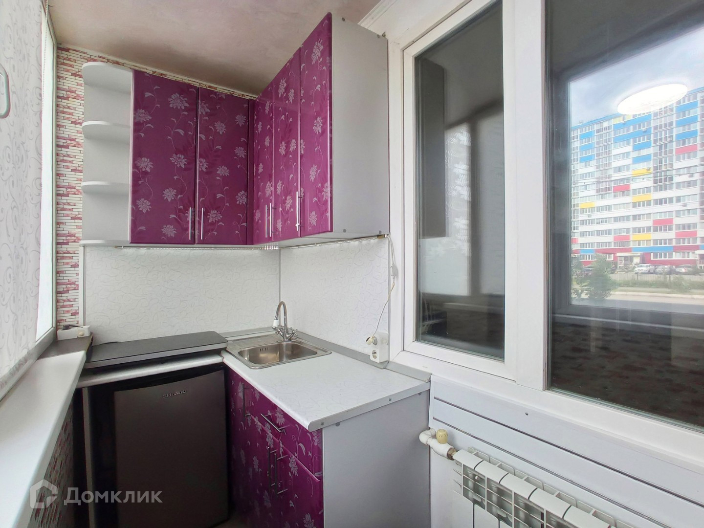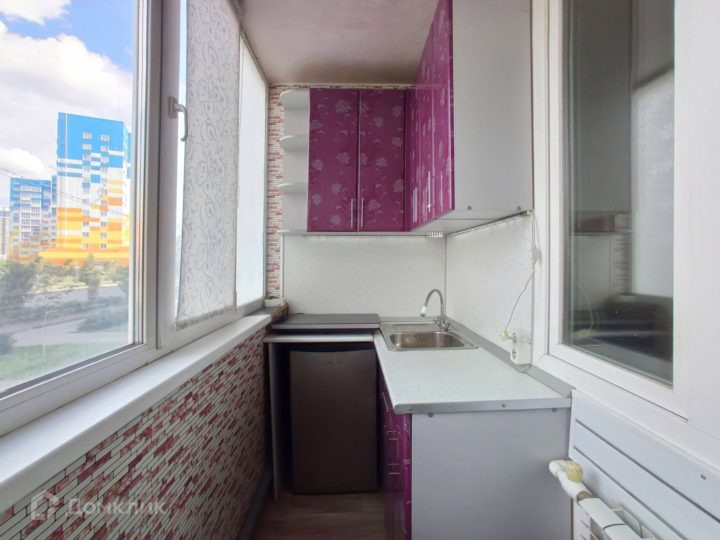 Интересное решение - кухонная зона вынесена на лоджию, подведена вода, слив и отопление.