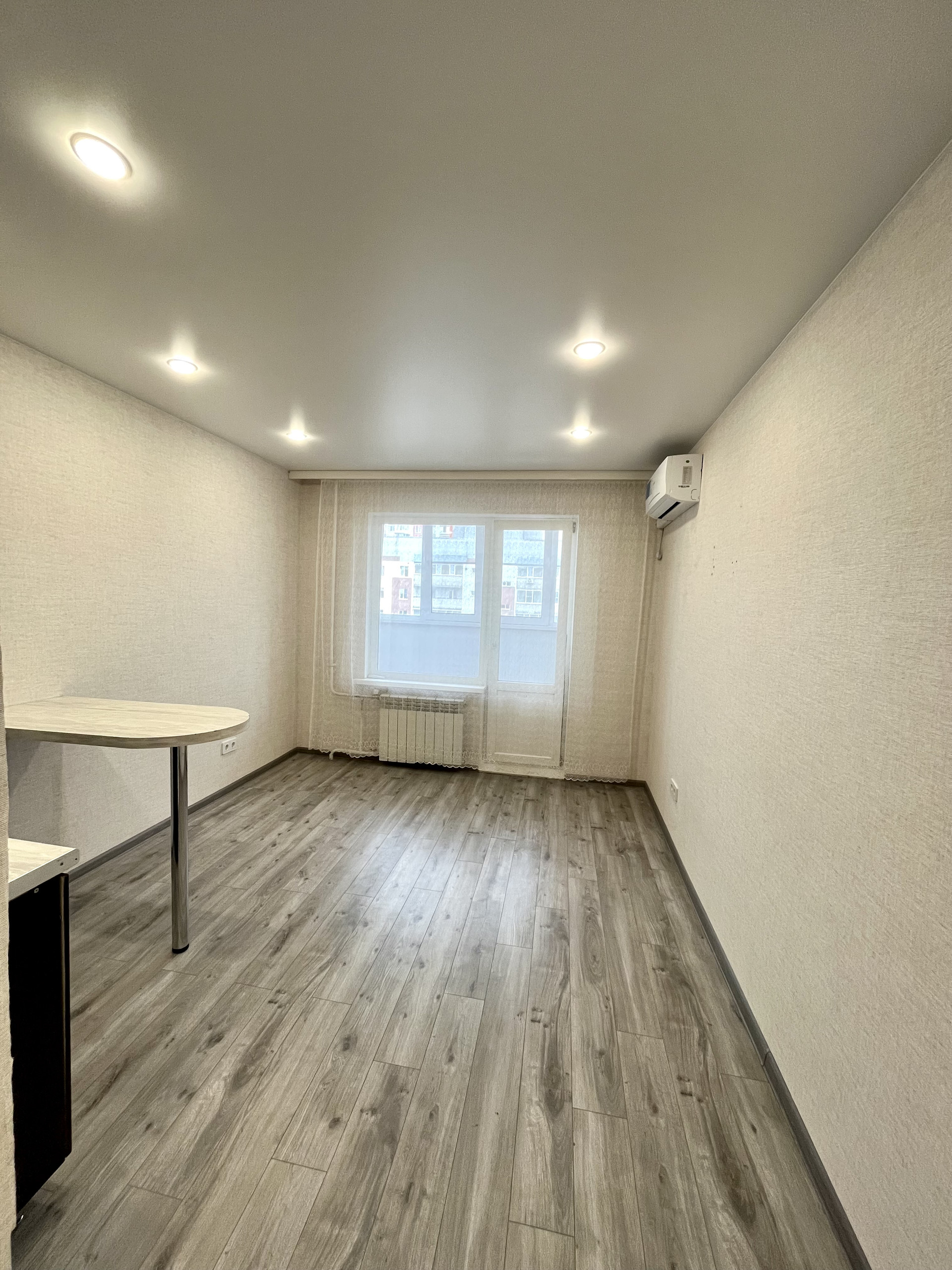 В квартире выполнен косметический ремонт-входная металлическая дверь, пласт. окно, новые радиаторы отопления, натяжные потолки с точечным освещением ,на полу ламинат. Остается кондиционер,кухонный гарнитур с барной стойкой,шкаф,душевая кабина и стиральная машина.