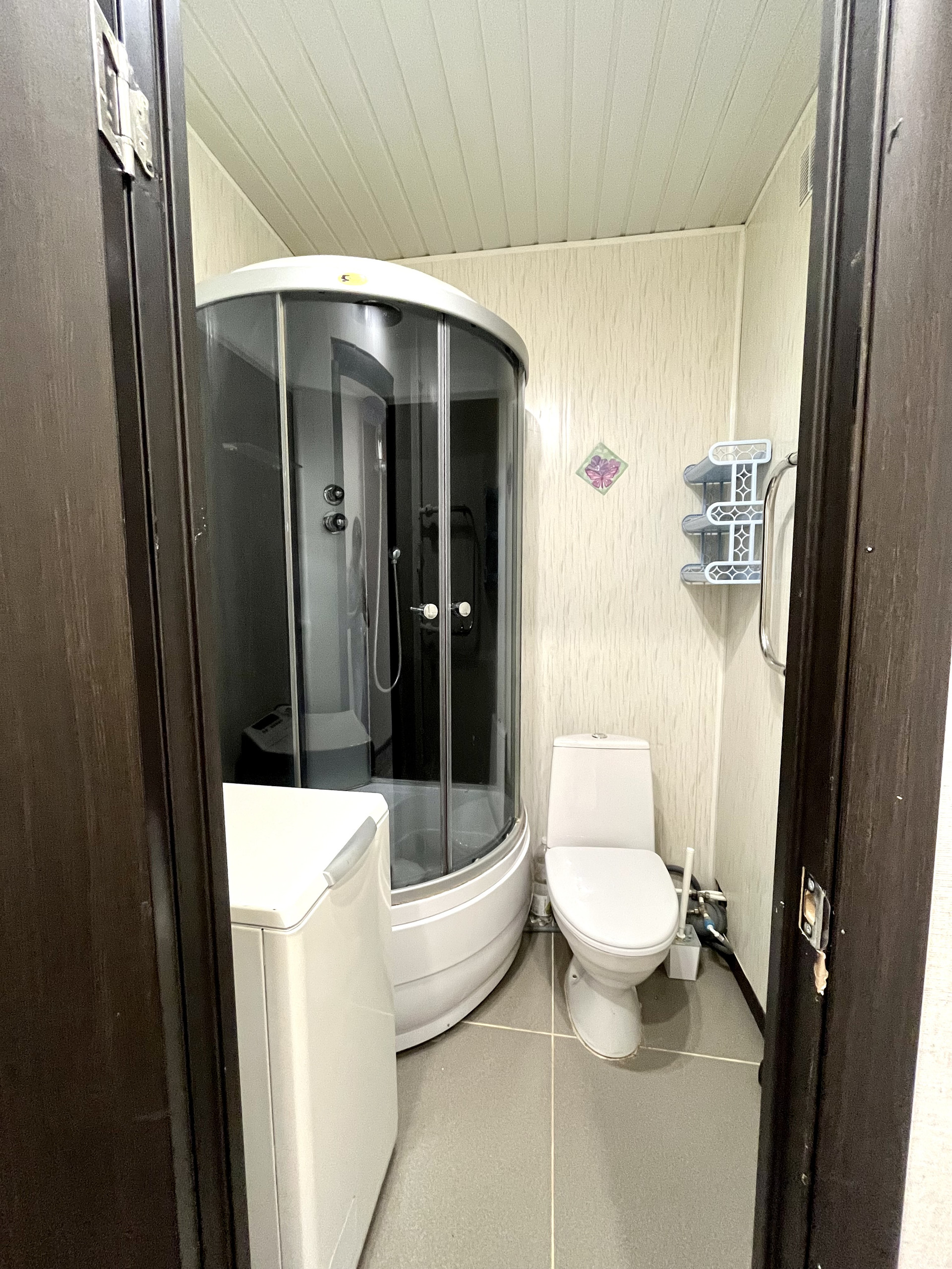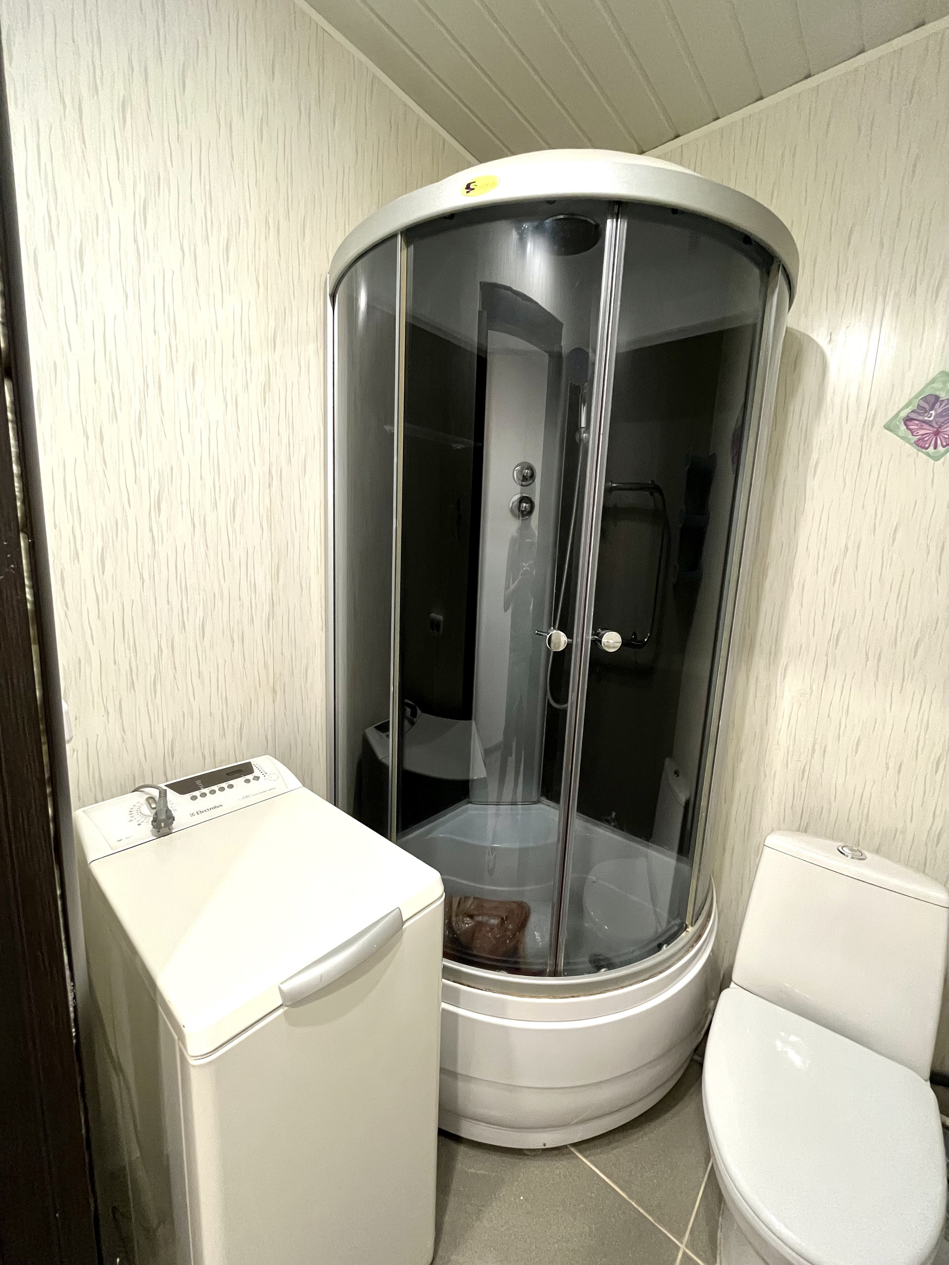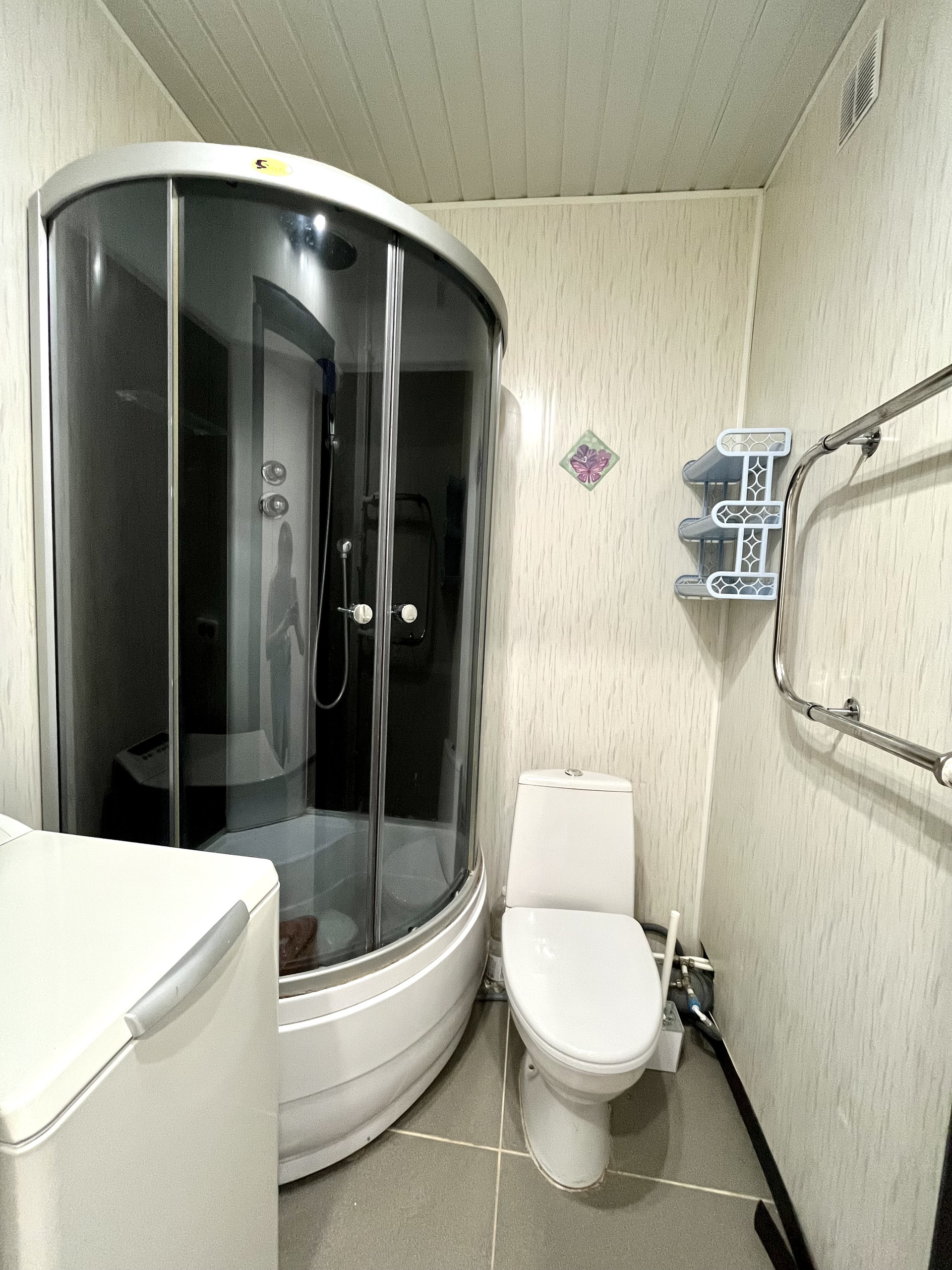 Санузел совмещенный в панелях с душевой кабиной.