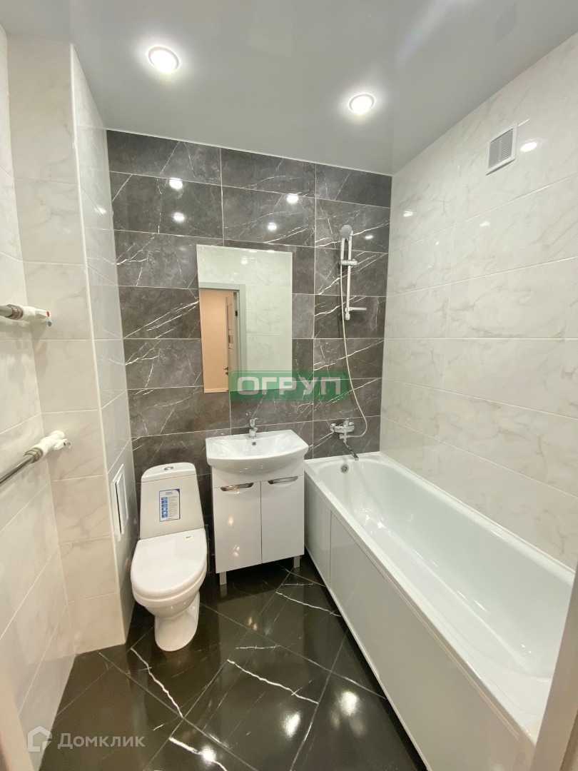 Санузел в современной плитке, новая сантехника.