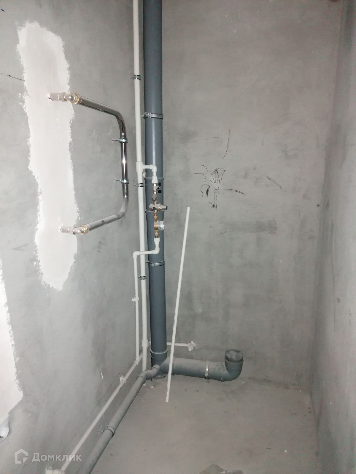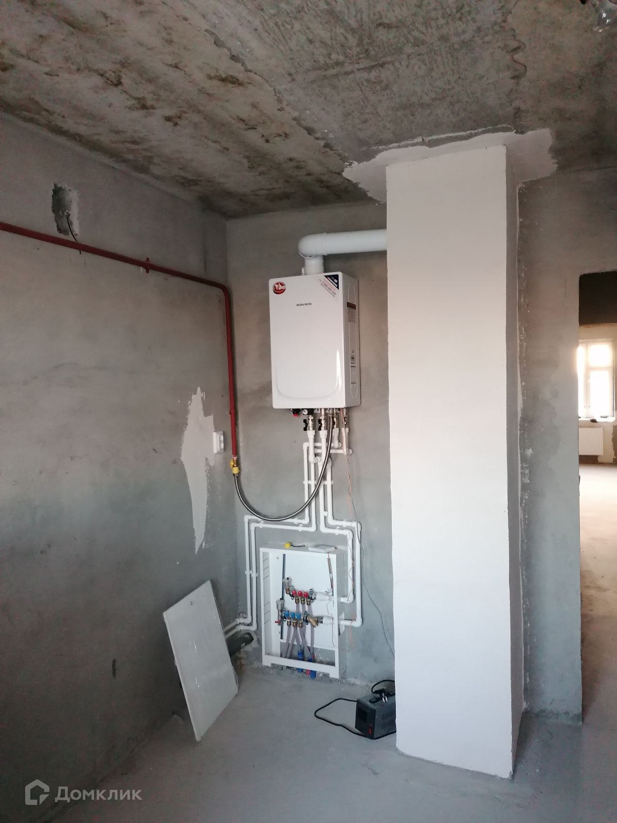 Стяжка пола, штукатурка стен, проведена электрика, установлены розетки и выключатели.