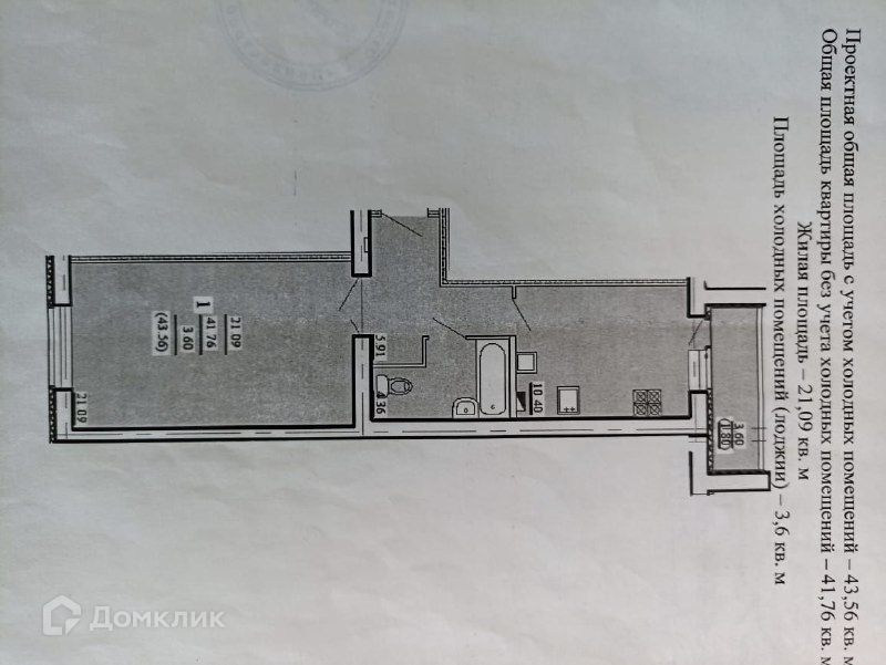 Общая площадь 43.6 м2