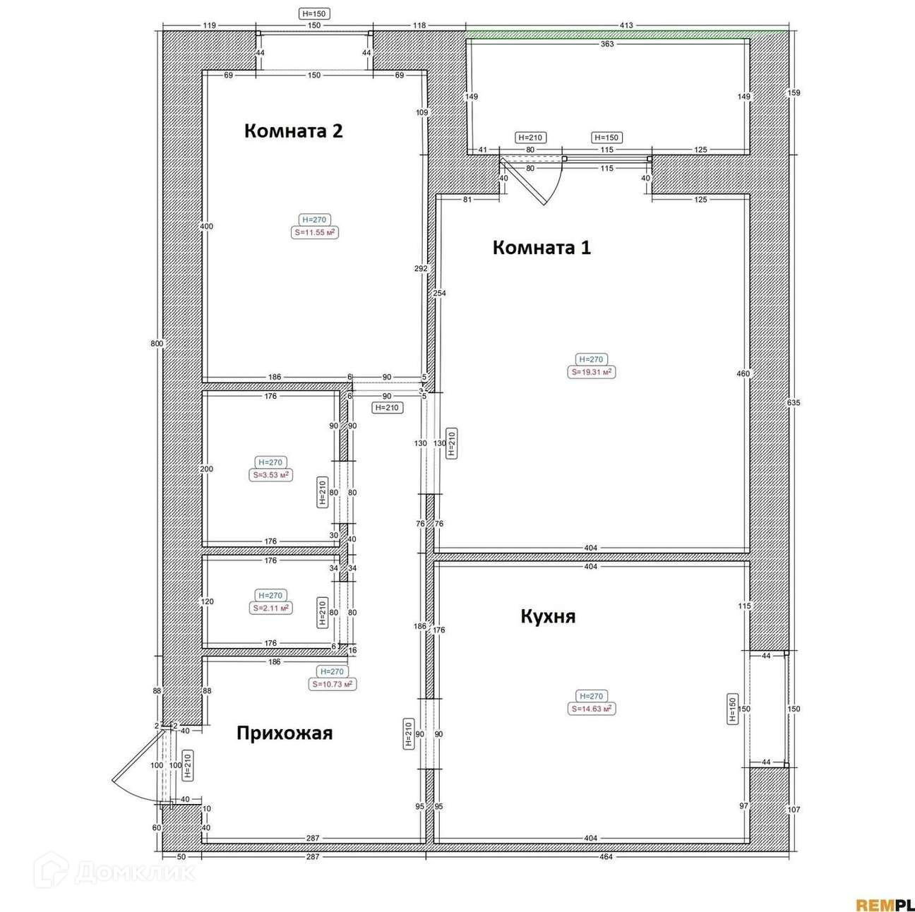 Высота потолков 2.7 м