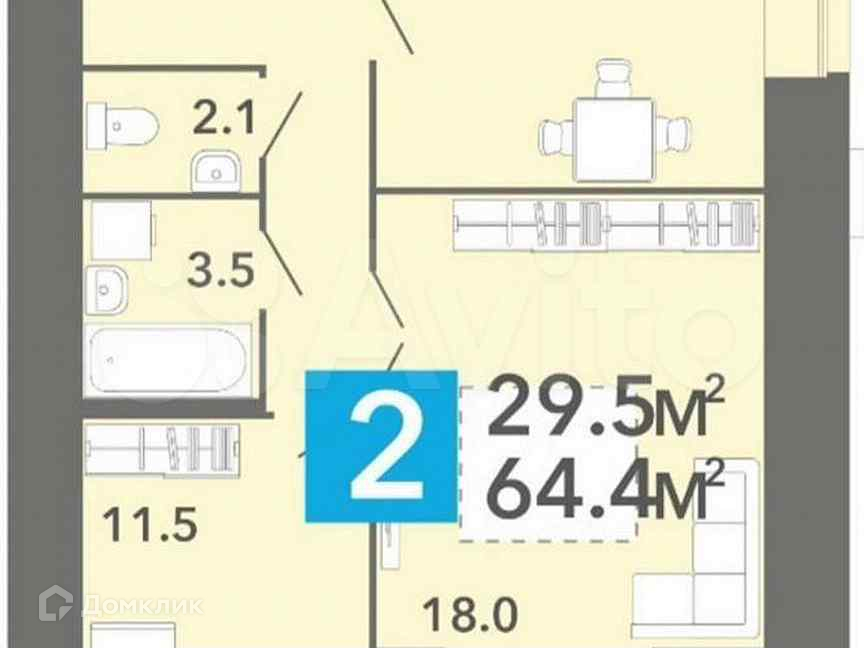 Жилая площадь — 18+11.5 кв. м.