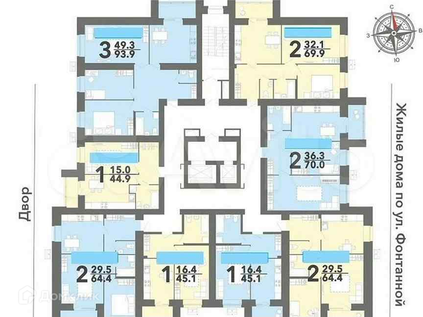 Общая площадь 64.4 м2