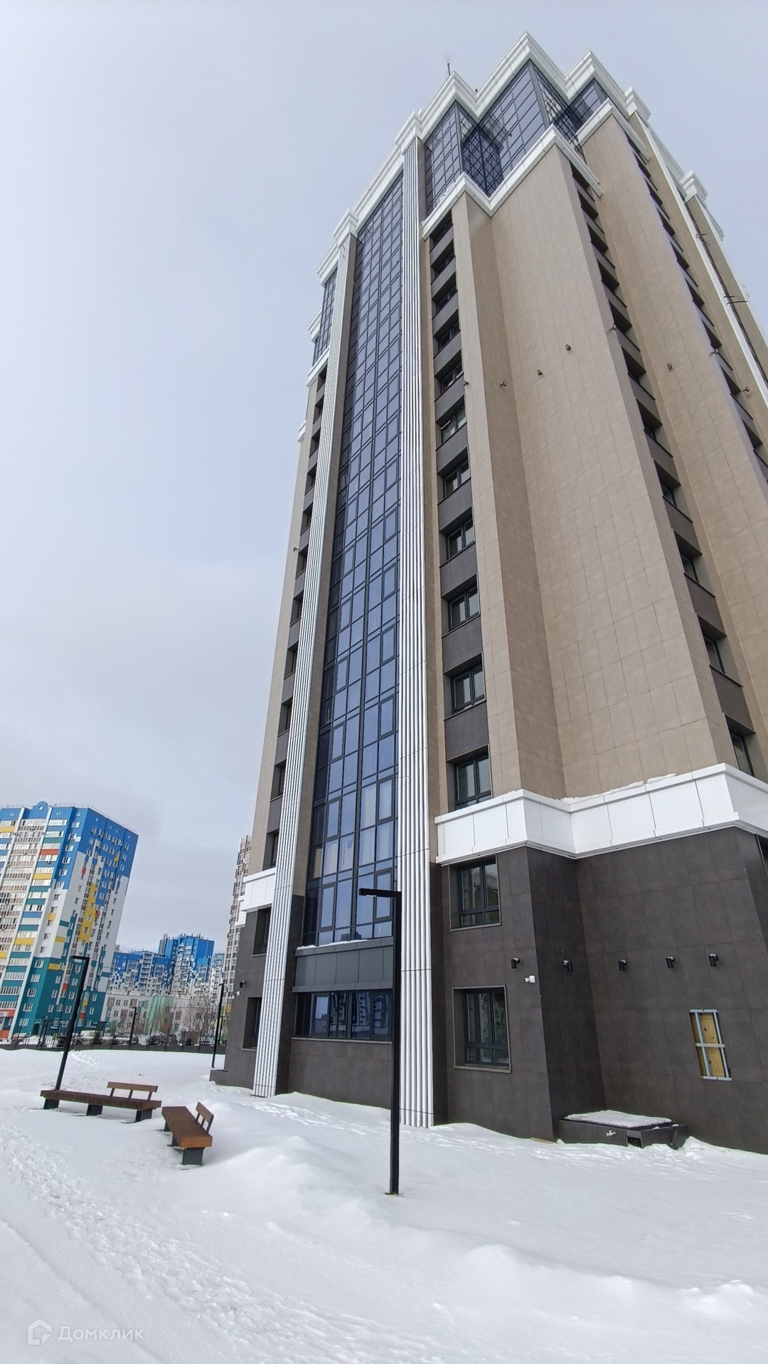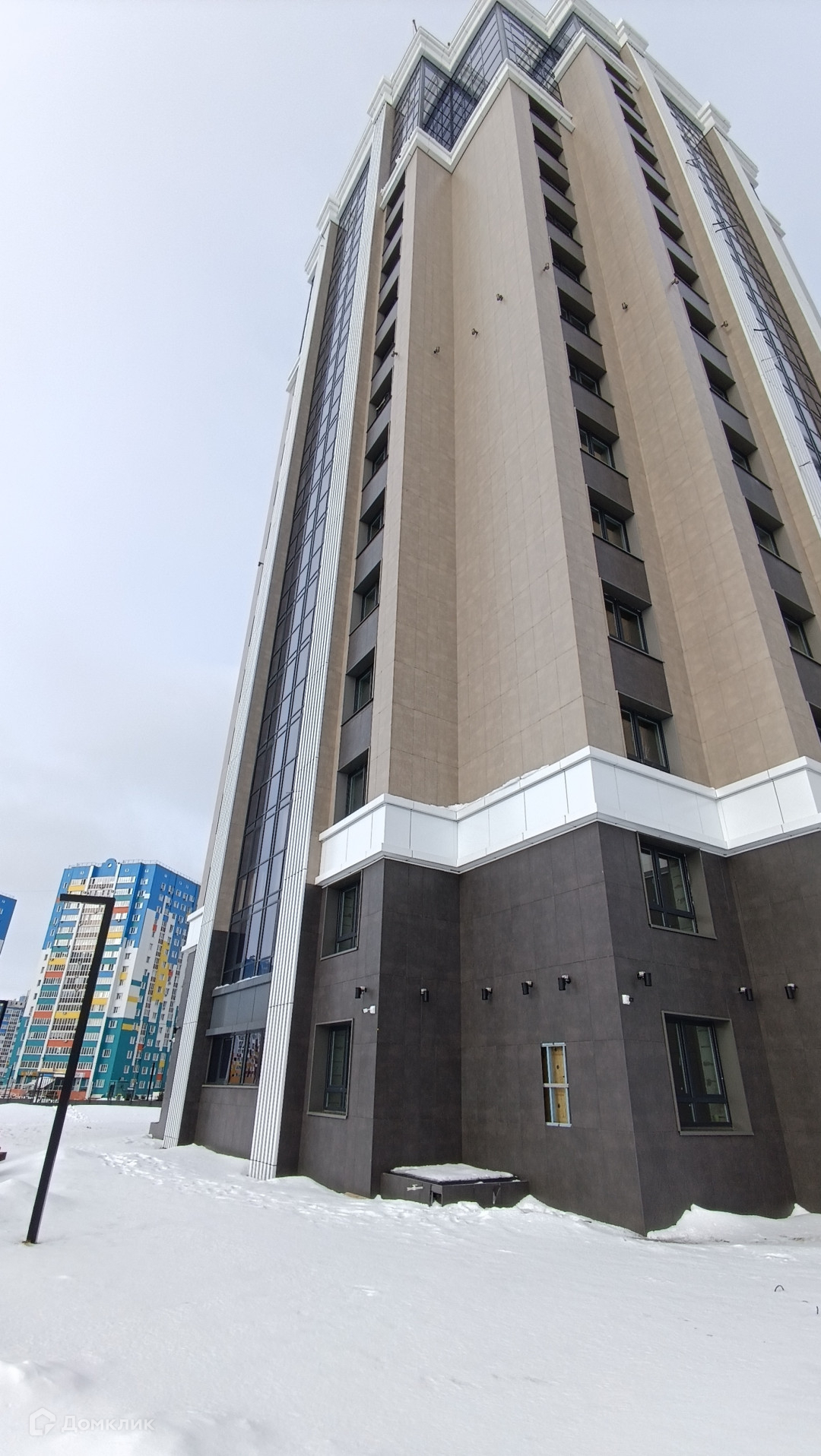 Имеется подземный паркинг и наземная стоянка возле дома внизу, красивая двухэтажная входная группа где находится зона ожидания и почтовые ящики.