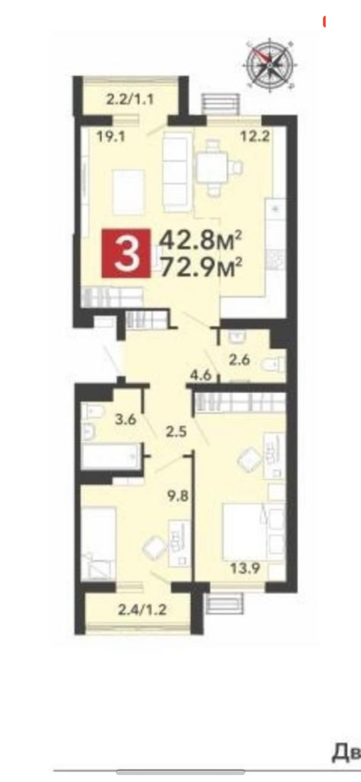 Общая площадь 73 м2