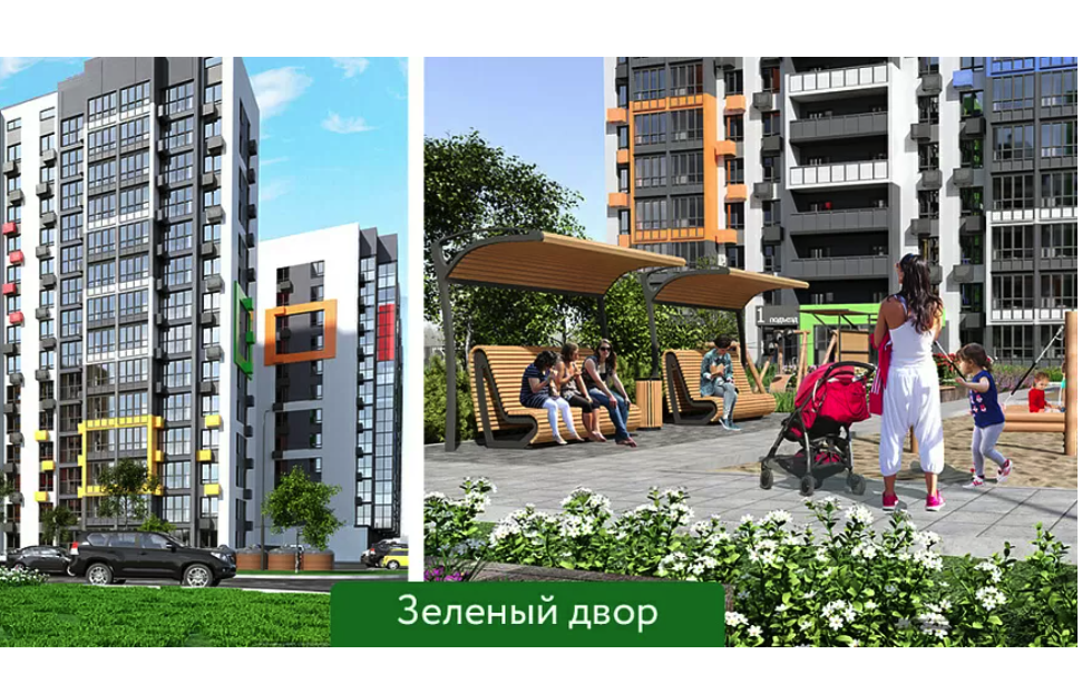 «Радужные дворы» — это жилой квартал, в котором все создано для безопасной и яркой жизни: продуманная  атмосфера, яркая архитектура, места для отдыха, спортивные площадки, зоны активности.