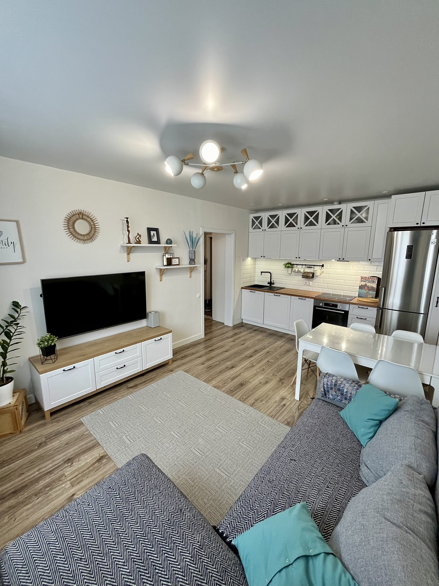 Выполнен качественный ремонт в Скандинавском стиле. Весь ремонт делался для себя от и до! Квартира выполнена в формате евро 3-комнатной квартиры для большего удобства.