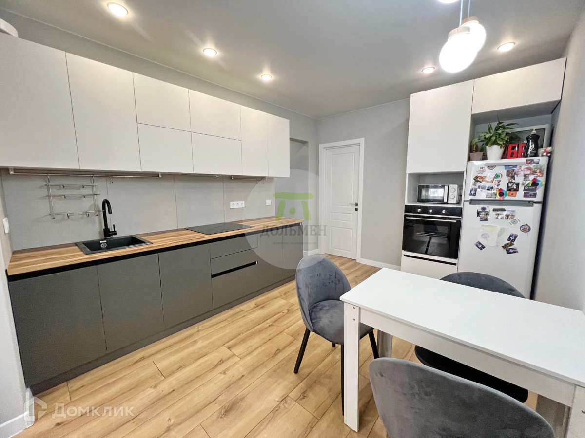 Общая площадью 65 м2 с большой кухней-гостиной 21.4 м2, где комфортно разместится вся Ваша семья за праздничным ужином.