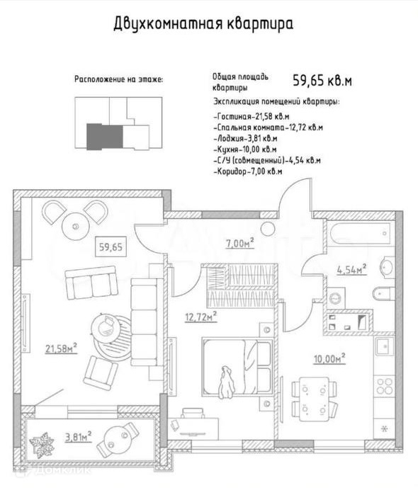 Общая площадь 59.6 м2