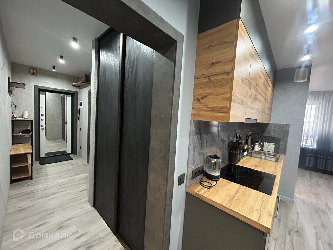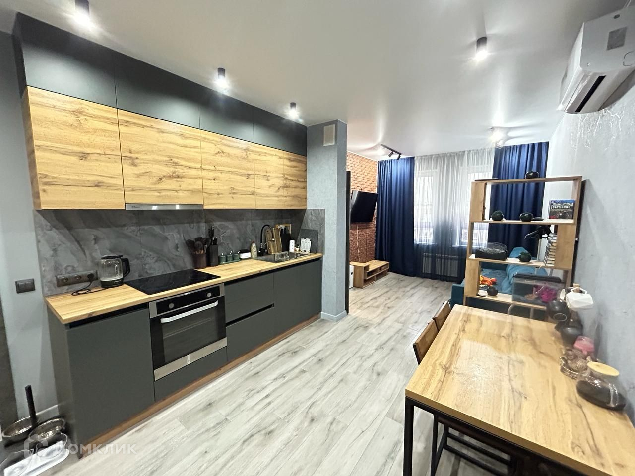 На полу кварц винил, стены декоративная штукатурка  ,трековое освещение и многое другое!