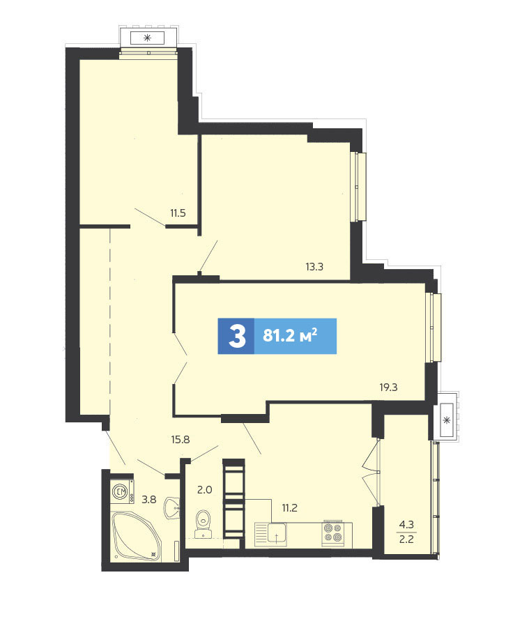 Общая площадь 83 м2