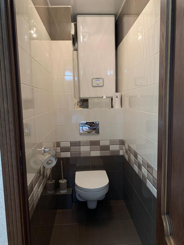 В санузле качественная испанская плитка, санфаянс производства Швейцария, Европейская акриловая ванна, смесители производства Германия, а также в подарок остаётся водонагреватель на 80л!