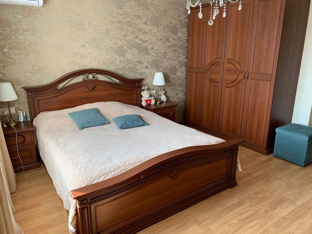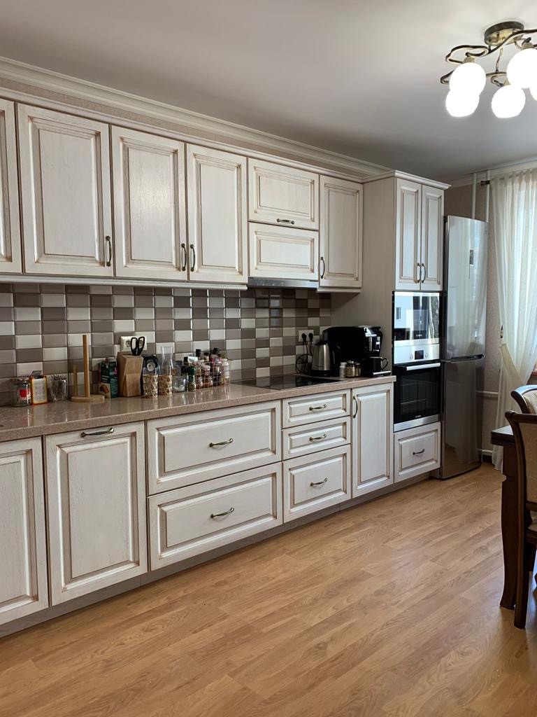 В квартире остается: диван, кровать с ортопедическим матрасом, много шкафов и других мест хранения. Огромным преимуществам является кухонный гарнитур выполненный из натурального массива дерева со столешницей из искусственного камня в идеальном состоянии. Из кухонной техники встроенная варочная панель и вытяжка Bosch. Раскладной стол из натурального шпона и стулья остаются новым хозяевам квартиры. Люстры и весь текстиль, выполненный на заказ, а Вам остается только перевести свои вещи!