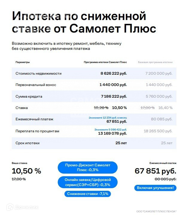 Расчет на ипотечном калькуляторе ONREALT.RU приблизительный, он не учитывает возможных дополнительных платежей. Точный расчет, условия ипотечных программ, срок, процентную ставку, график выплат и прочие особенности предоставляет банк при заключении договора об ипотечном кредитовании.