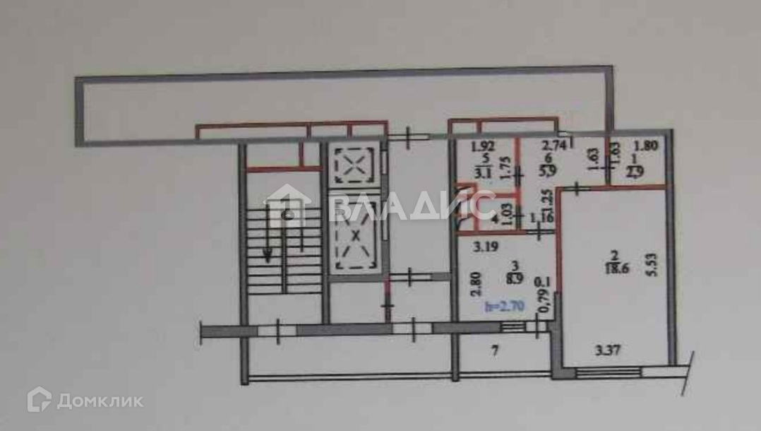 Высота потолков 2.7 м
