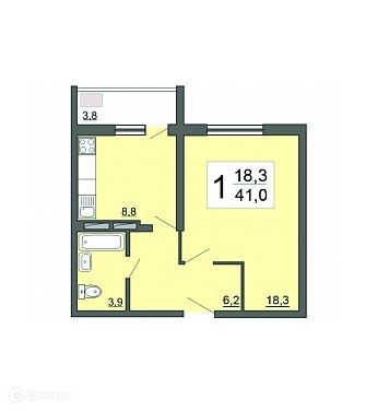 Общая площадь 41 м2