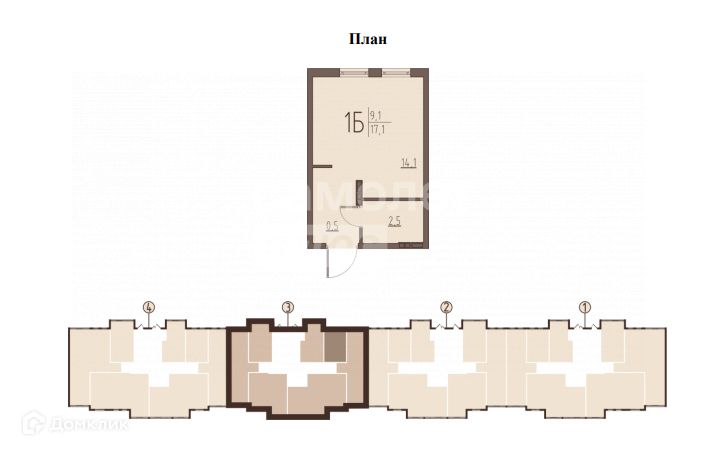 Общая площадь 17.1 м2