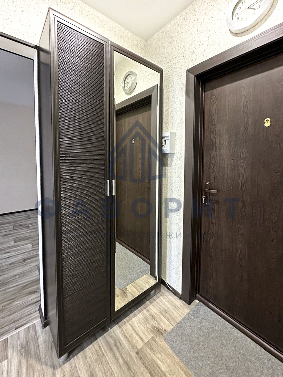 Вместительный коридор, где уже установлен шкаф для сезонной одежды и вещей.