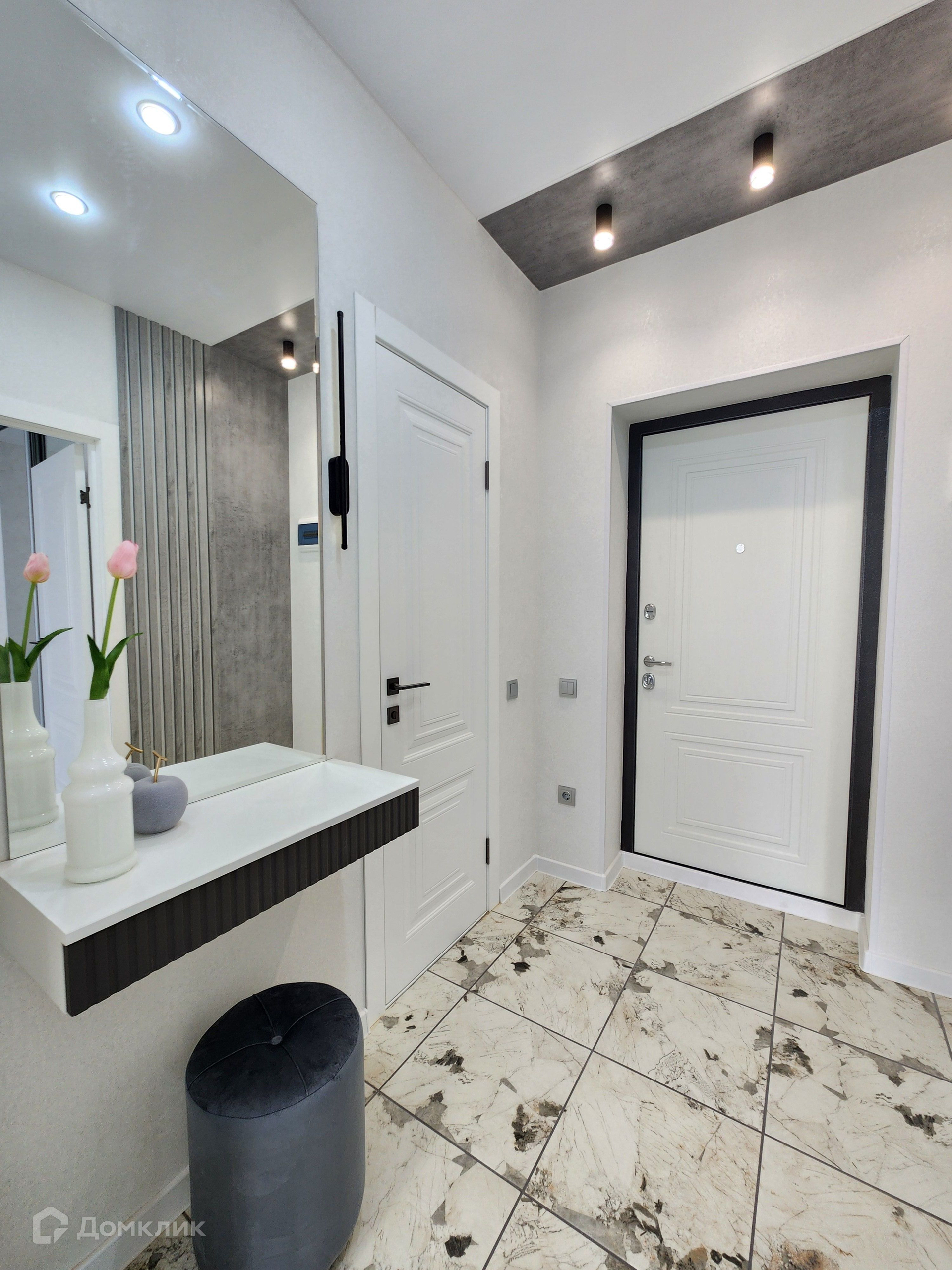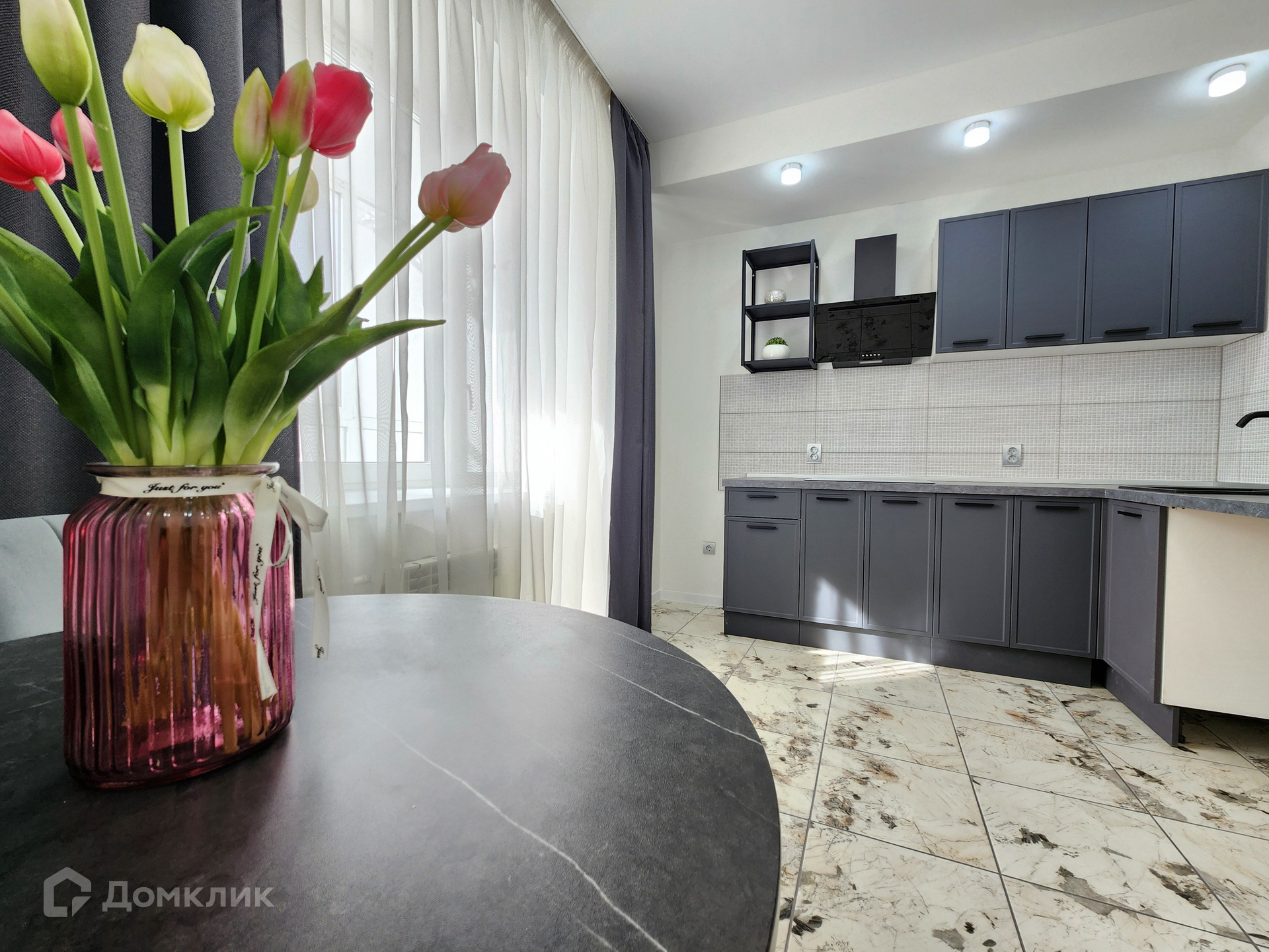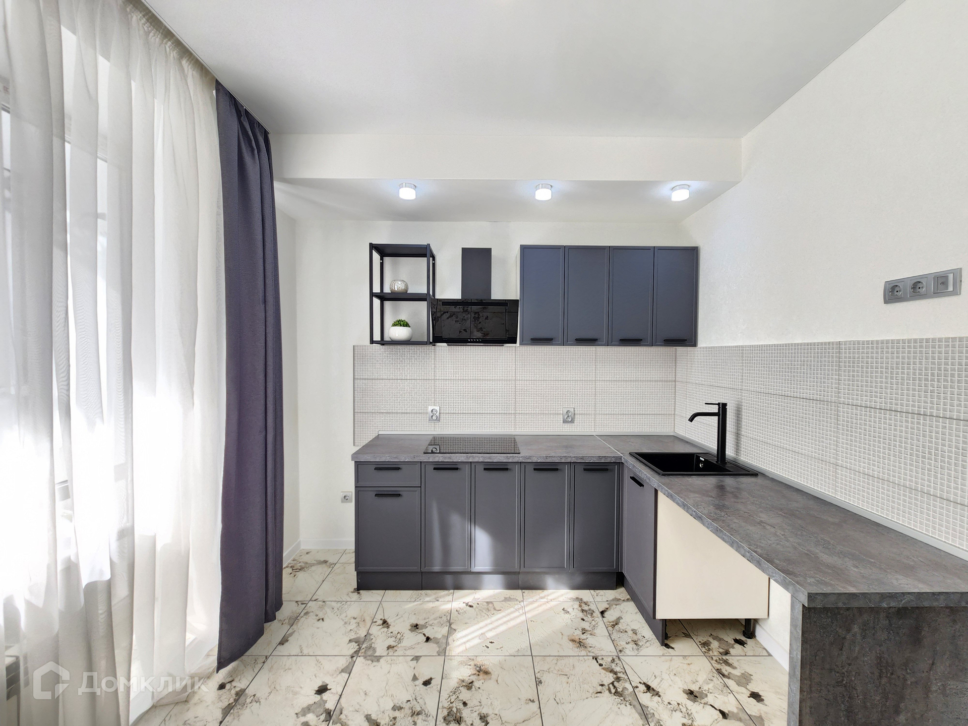 В коридоре и на кухне керамогранит.  Натяжные потолки , современные люстры, светильники. Санузел совмещен в кафеле, ванна акриловая. Современное интересное планировочное решение - кухня с гостевой зоной и выходом на лоджию, где можно оборудовать комнату для отдыха. Просторная спальня со встроенной гардеробной.