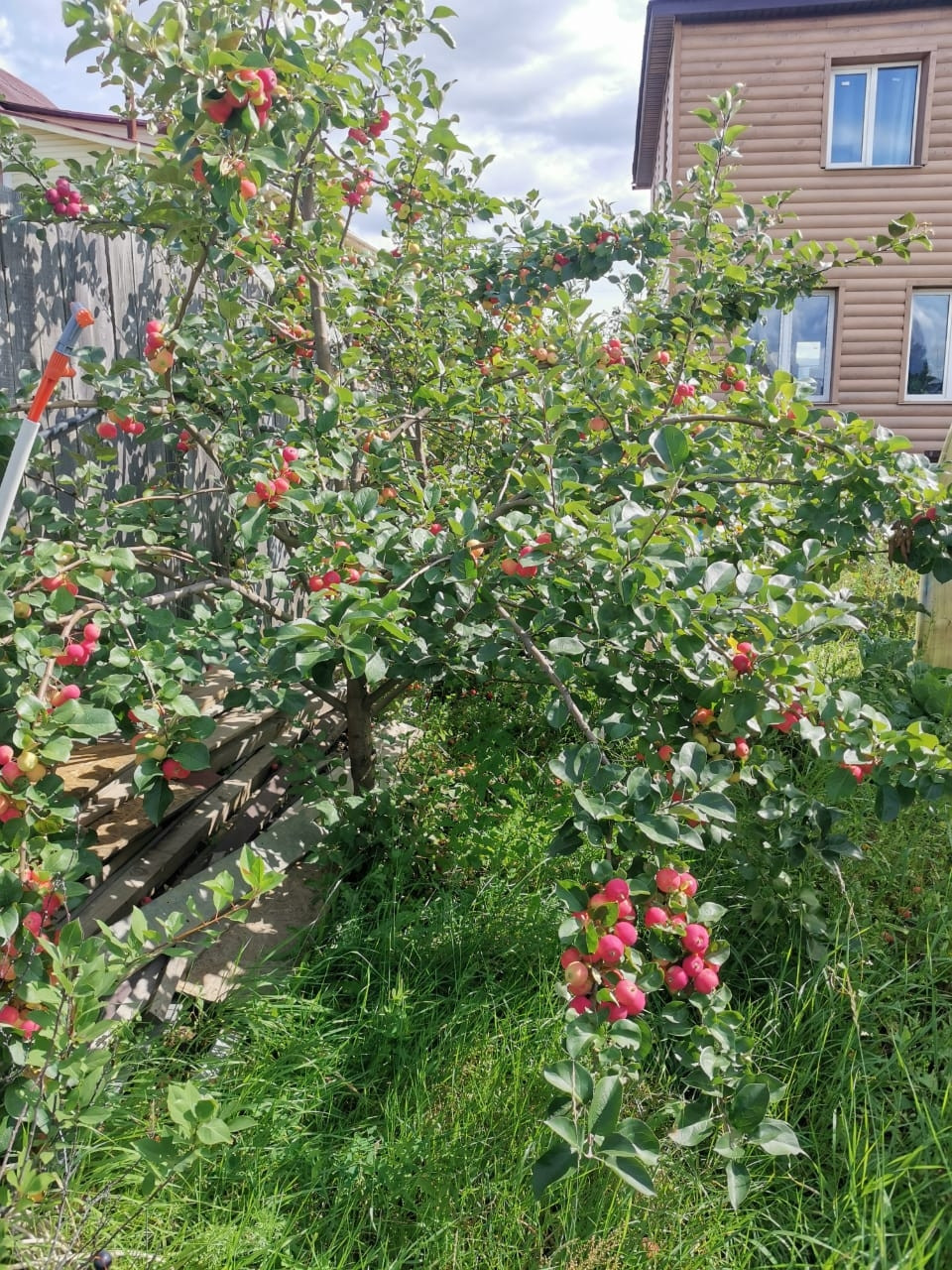 На участке 15 соток высажено много плодовых деревьев и ягодных кустарников, есть теплица.