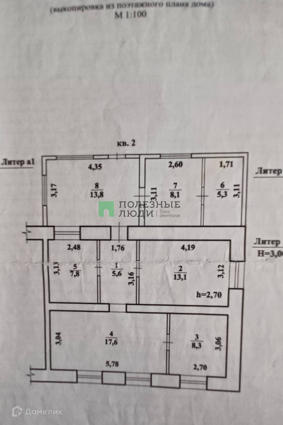 Жилая площадь 52 м2