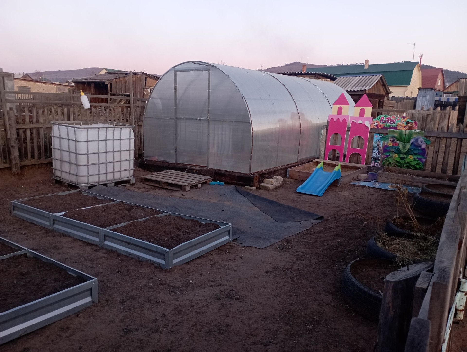 на территории , вся земля удобрена, насождения (малина, смородины, яблоня, вишня)