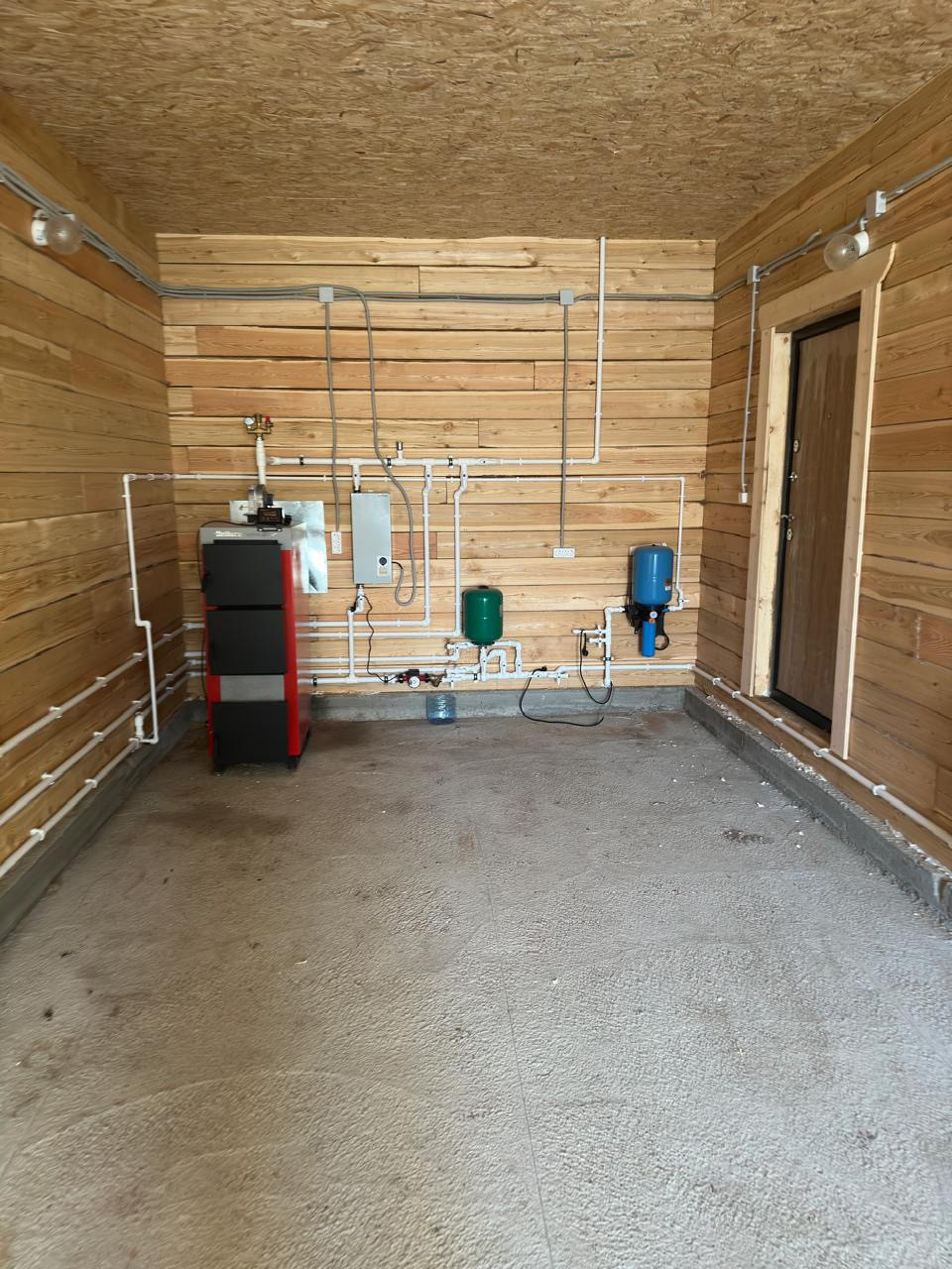 Дом 2-х этажный с гаражом. На 1-м этаже кухня-гостиная, коридор, санузел, лестница, на 2-м этаже -4 комнаты. Отопление двойное: теплый пол и батареи, канализация -септик 6 м3, скважина 60 м, электричество 380 вт.
