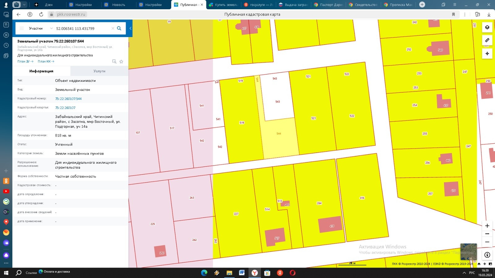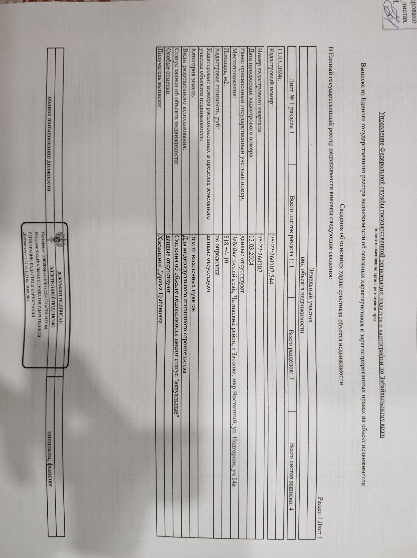 Продам земельный участок 8,18 соток. Кадастровый номер 75:22:260107:544. Вид разрешенного использования ИЖС.