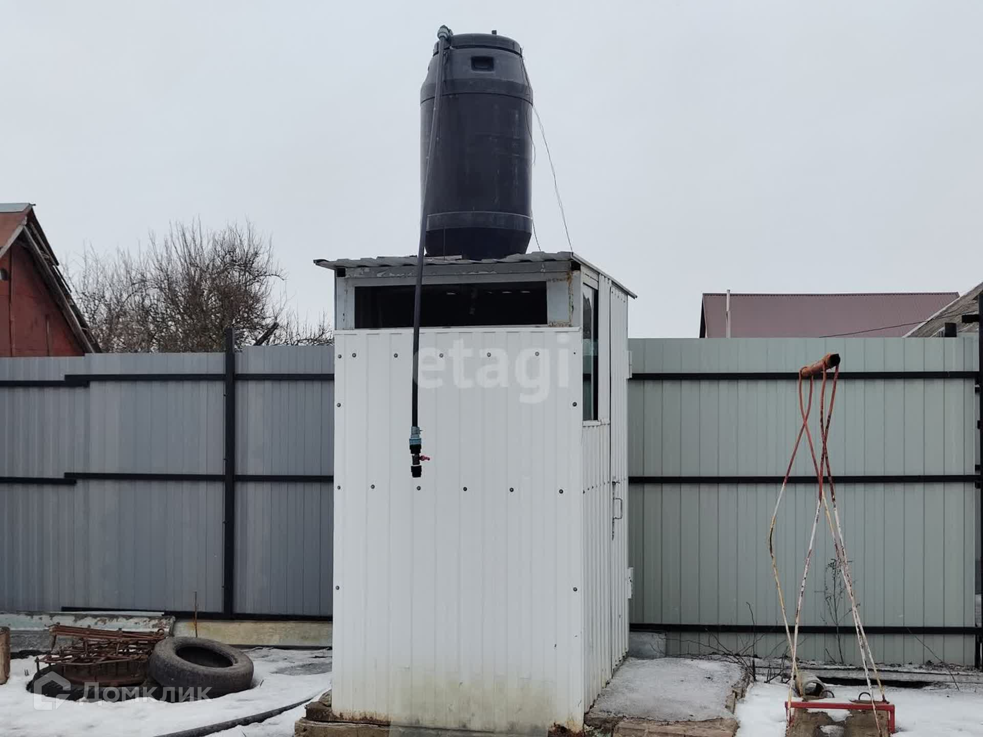 Участок 11 соток. На участке большой гараж, мастерская, подвал, летний душ, хоз. блок. Посажено немного плодовых деревьев: шелковица, яблони, абрикос.