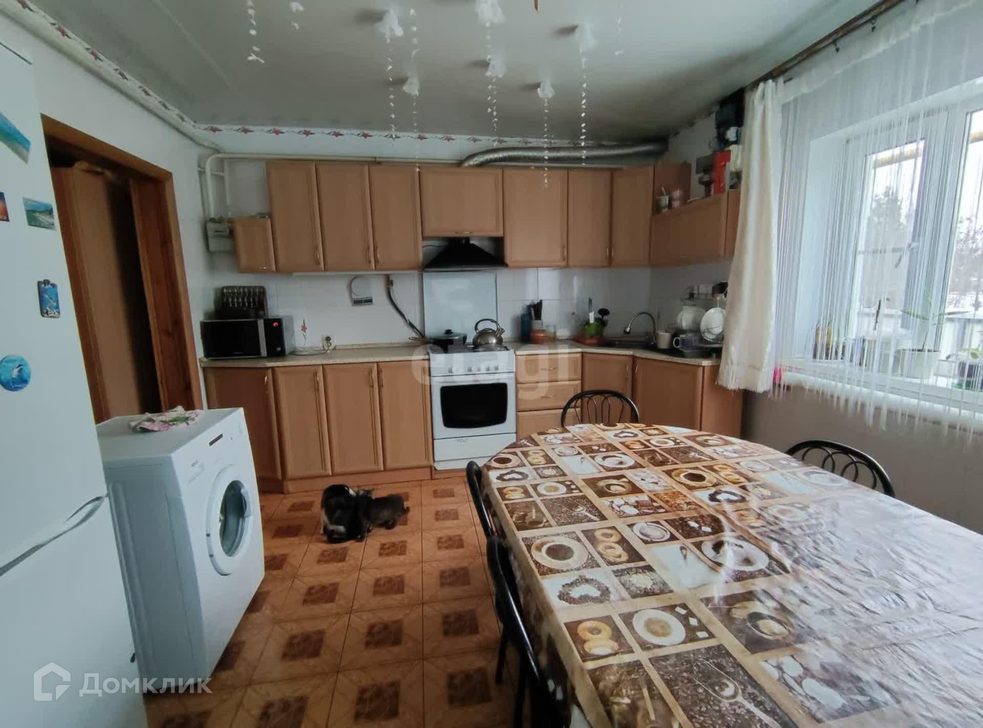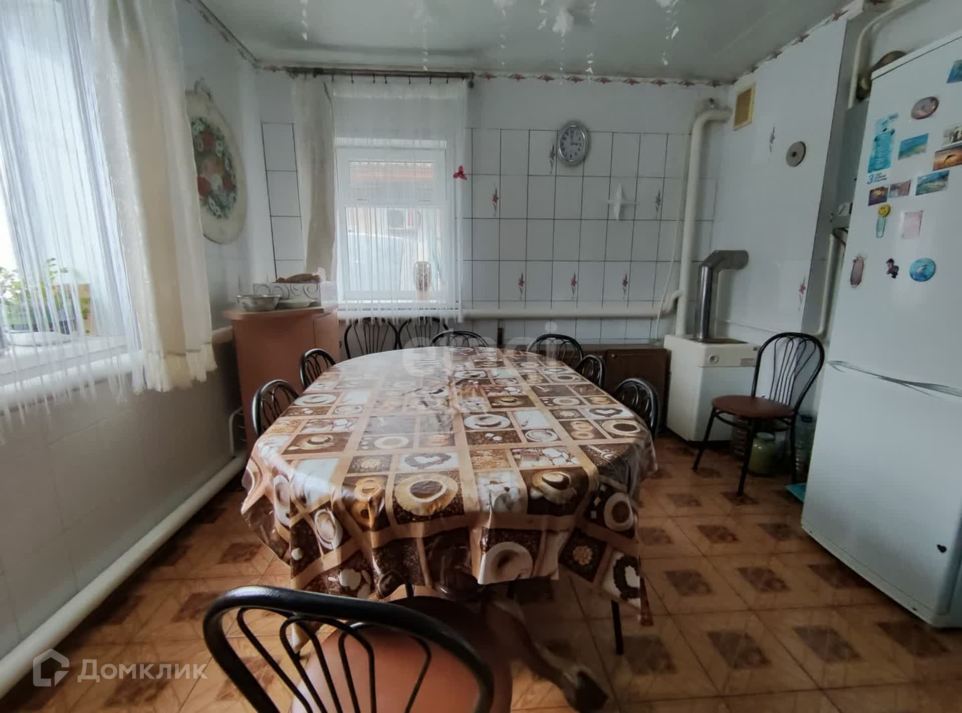 Основной дом построен из бревна, к нему сделана большая пристройка из газоблока и обложено кирпичом. Комнаты все светлые, вставлены большие окна ПВХ. На стенах обои, потолок натяжной, на полу качественный линолеум. Кухня и раздельный санузел - кафель (стены и пол). Коридор обшит вагонкой и покрыт лаком. Потолки достаточно высокие. Планировка: 2 спальные комнаты, комната для отдыха (в ней сохранили печь под дрова), очень большая гостиная и большая светлая кухня. В кухне установлены котел, газовая колонка, там же встроена стиральная машинка.