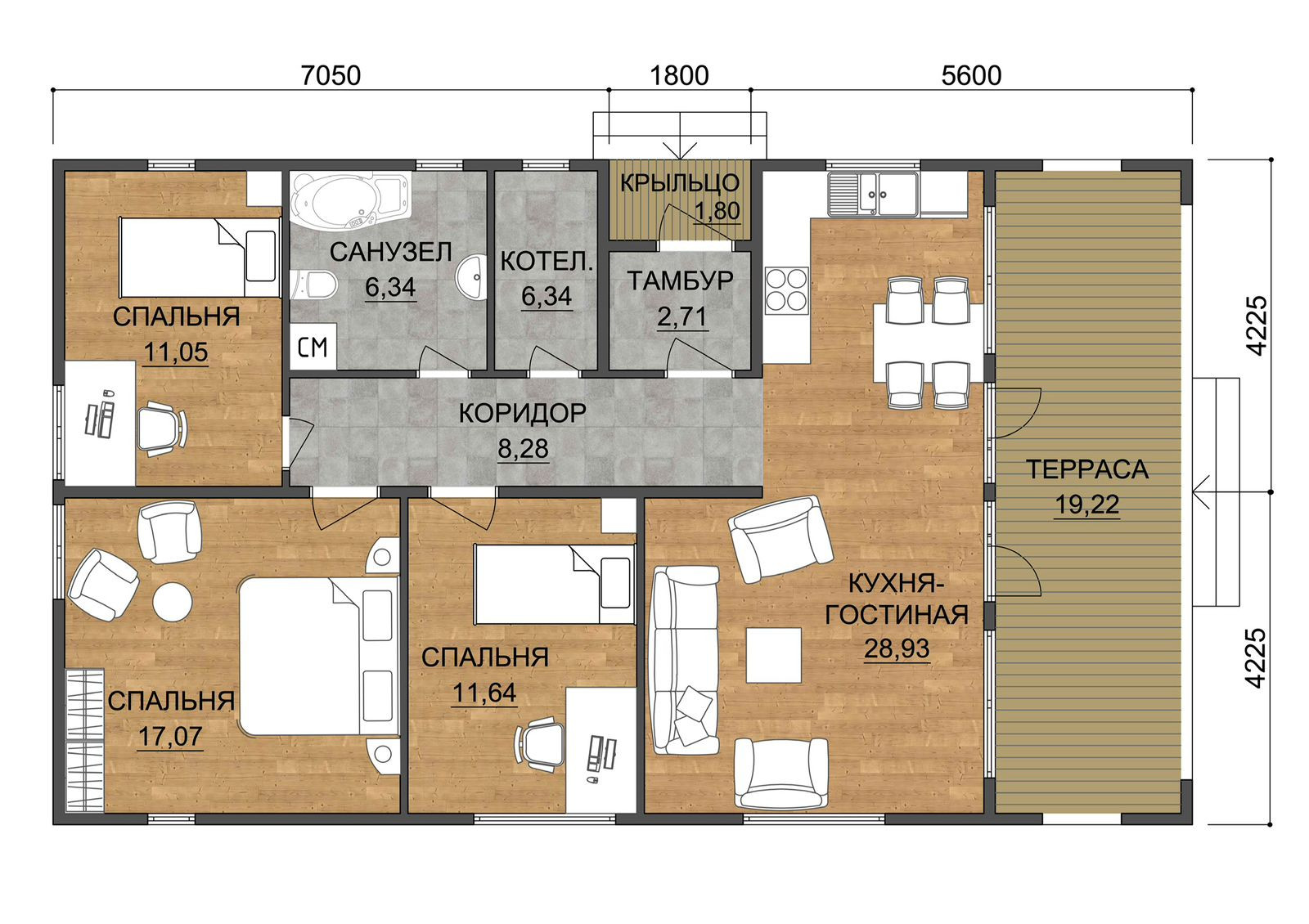 Общая площадь 115 м2