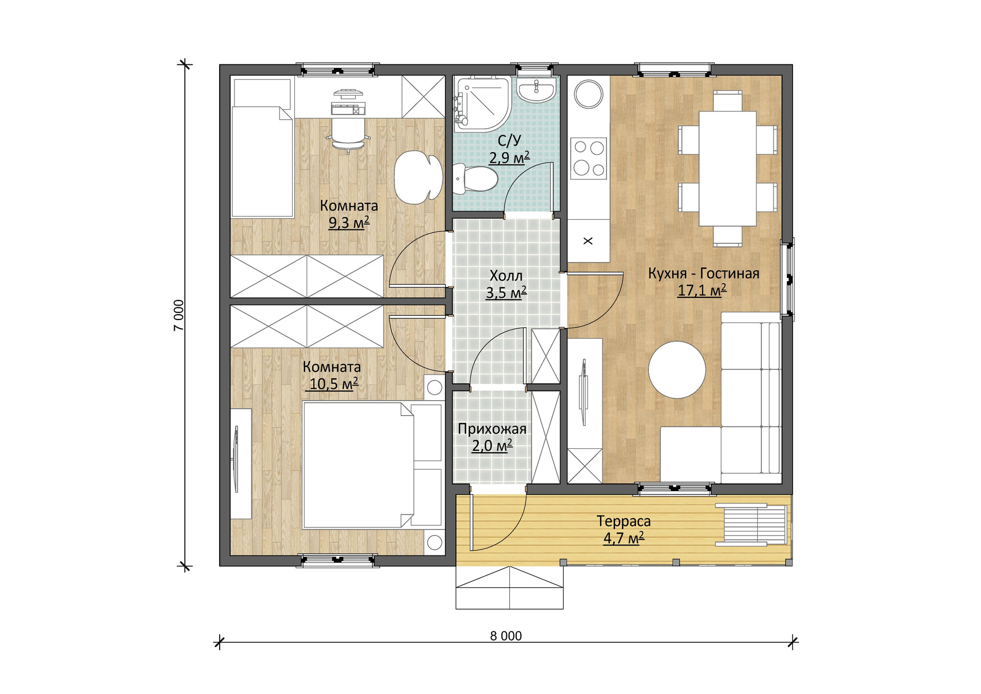 Садовый дом с разноуровневой крышей 7х8 м и полезной площадью 49 м2 – это практичное, стильное строение. Удачная, функциональная планировка и простота возведения делают его отличным решением для небольшой семьи.
