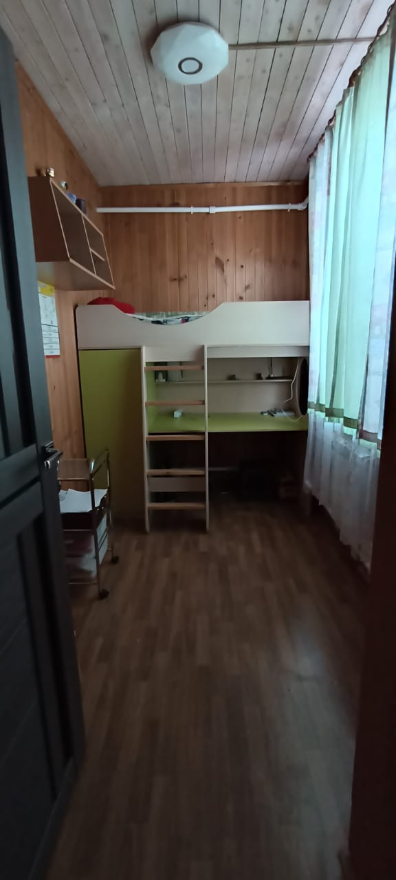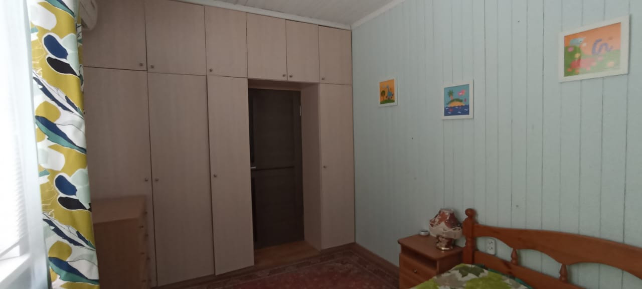 В доме 3 комнаты, спальня 12 м², со встроенными шкафами и кондиционером; окно на юг.