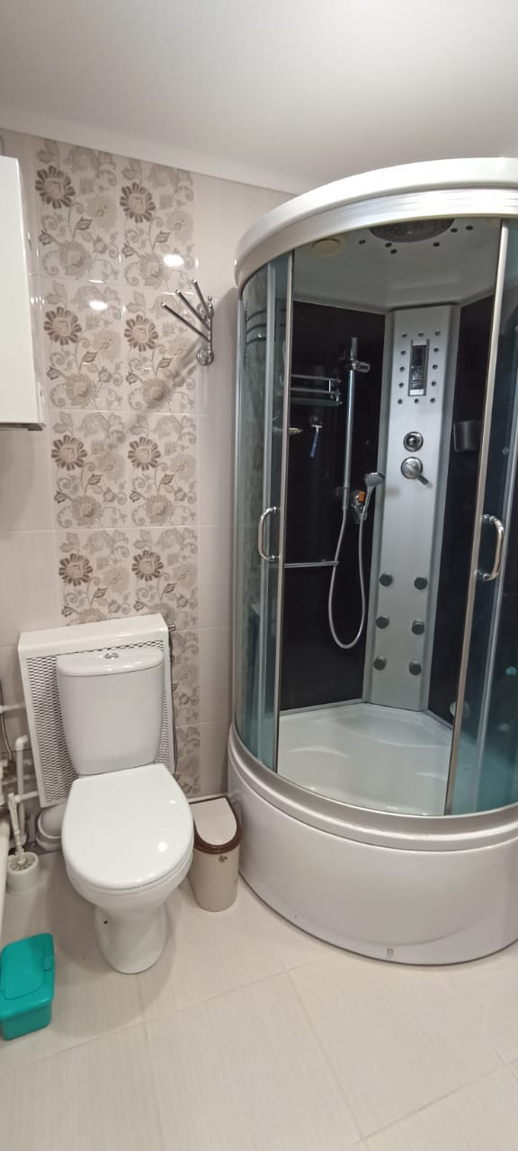 Ванна с душевой кабиной, площадь 8 м² в кафеле, на полу керамогранит (+эл.теплый пол)